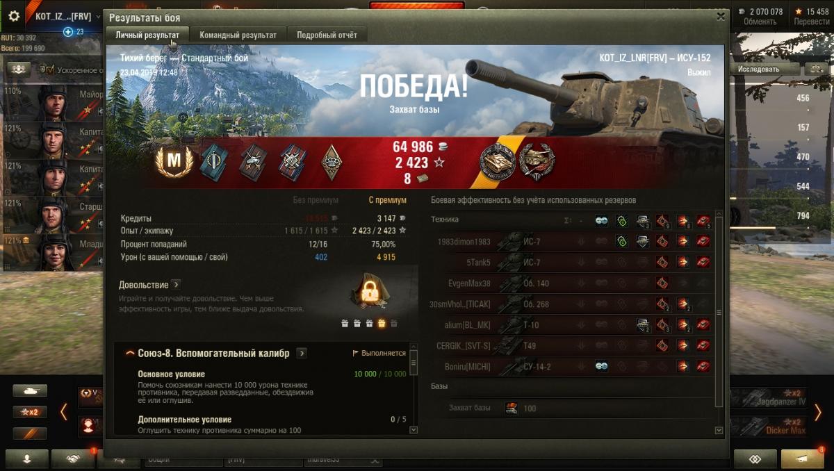 Всем привет! Я тот самый "нагибатор" на ИСУ-152, если кто помнит https://forum-mt-prod.lesta.ru/emoticons/Smile_Default.gif И так, настрадался я на пушке Д-4С, откатав на об. 704 15 боёв и имею средний урон 3162))) За эти бои были серьёзные проблемы с тайпами, попал чуть не туда и сразу не пробил. Ну и в классике жанра - стерва стоит бортом ко мне, а я снимаю гусли без урона https://forum-mt-prod.lesta.ru/emoticons/Smile_veryhappy.gif Получился такой хиленький мастер на предтоп пушке: