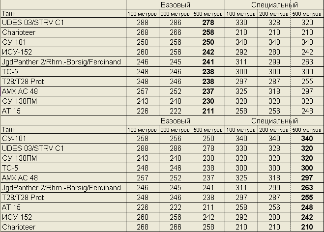 Короче решил немного помаяться фигней и собрал статистику по бронепробитию почти всех ПТ8 (не нашёл только АМХ 105, Канонягдпанцер, ВЗ-120Г и ВЗ-111Г). Любопытная табличка получилась.