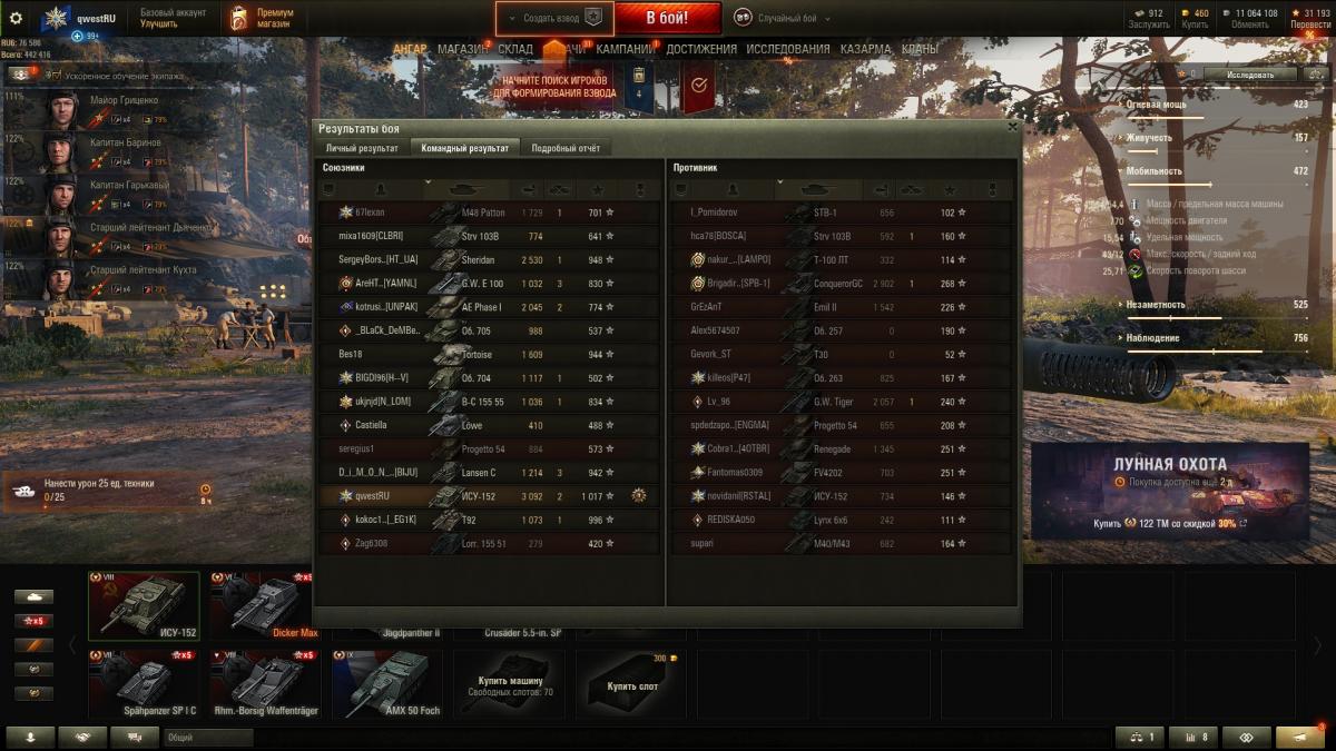Самый кайф играть с десятками. Если настрелять по ним нормально и отправить 2-3 десятки в ангар, помимо цацки по итогам боя ещё не Хило стата растёт. А ИСУ-152 может и десяткам не хило накидать. В НЛД все пробивает и каждый чемодан по 680-880 хп. А фугасами по 400
