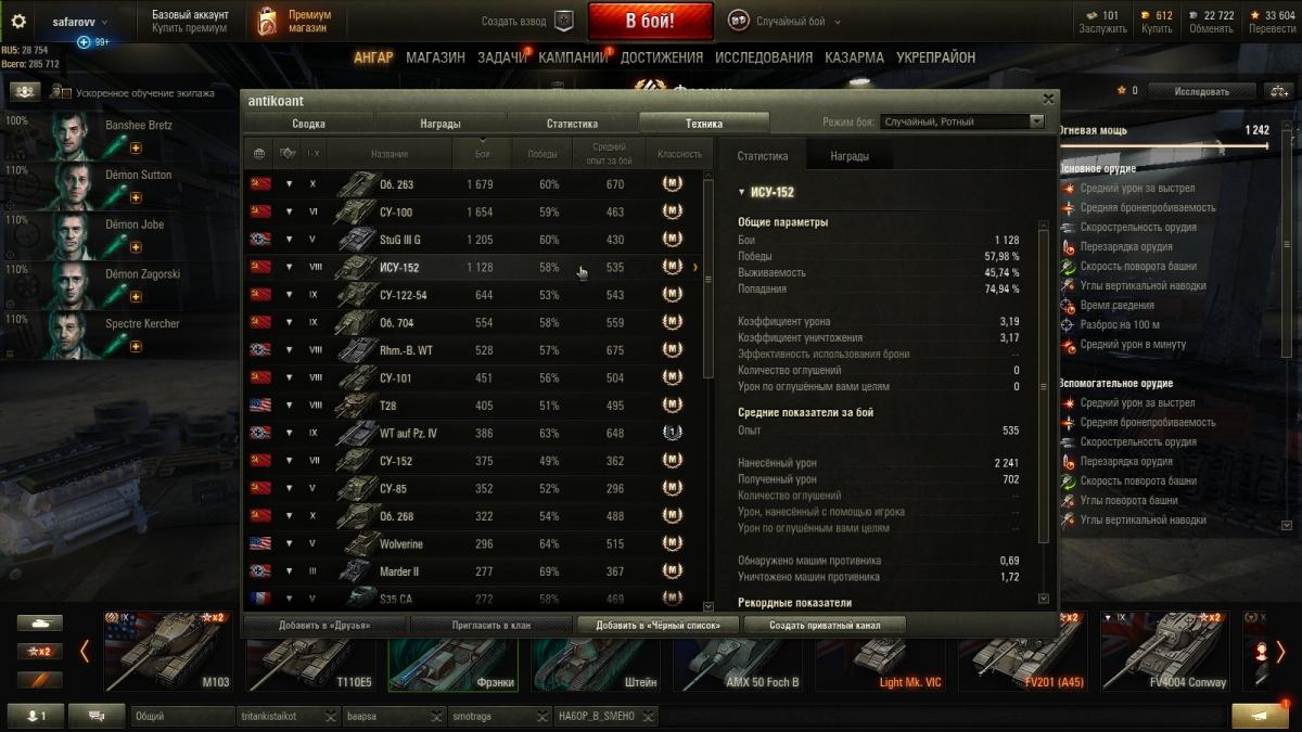Посмотрел некоторые реплеи  автора . И понял , что нечто подобное уже видел 4 года назад  у  знакомого  парня , с которым  покатались во взводе  достаточно много  , пока он не свалил чисто на 10 левел http://cdn-frm-eu.wargaming.net/wot/ru/uploads/monthly_11_2017/post-597768-0-89541600-1511439528_thumb.jpg. Антикоант , Костя , классынй был игрок , по сильнее  Солнечного , и с его манерой игры   с первой линии .Ну т.е. совсем не ПТшной игрой .http://cdn-frm-eu.wargaming.net/wot/ru/uploads/monthly_11_2017/post-597768-0-68268600-1511439552_thumb.jpg Так вот Костя обладал каким то  не понятным мне даром , при более слабом экипаже , на  одной позиции ,  мне от врага прилетало , ему нет .Достаточно сказать . что выживаемость у него по акк  46%, против  30 у  Солнечного . Такое впечатление , что он  с шапкой невидимкой играл . Ну и  наглости у него было , как у Солнечного ( а вот выпендрежа не было ) .То, что я видел  у Солнечного , мне ничего нового не открыло .Нерф  пробития меня мало волновал , как я  не раз говорил , 260 вполне достаточно по 90% целей , а по монстрам бронированным  ...эпизод  с Рудников Солнечного - последний враг Маус  под горой , его  окружили 4-5 союзников Солнечного , Солнечный  то же вылетает на него весь такой радостный - ща дамагу дам  , ба-бах в упор..... а в ответ - СОСАТЬ ! (ну в смысле не пробил ) . Меня итересовала возможность игры  со второй линии . т.е. с дистанции от 300 метров , что естественно для ПТ типа ИСУ. И на которой ( дистанции ) она после нерфа  перестала попадать .А для игры на первой линии  есть другие  более подходящие ПТ , даже та же  су101 . не  говоря уж о  Феде или Яги  2 . П.С. Что бы играть на первой линии , как Солнечный , надо обладать его  везением и скилом ( как и  у Кости было )  80 % игроков ИСУводом при  попытке повторения  будут уходить в ангар в лучшем случае  с  одним пробитием .