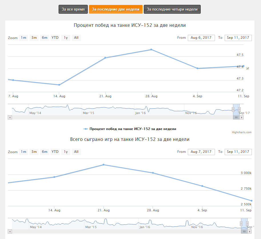 эм.. а почему на первом, более старом скрине, общее количество боев больше? или типа это количество боев "за последние четырИ недели" как указано на вот ньюс?) если так, то доверия к сайту у меня околонулевое, т.к. многие отмечают почти полное отсутствие в рандоме ИСУ, а она внезапно чаще удеса катается. 48 млеха чаще ИСУ попадается в рандоме, а боев на ней в 2 с лишним раза меньше сабжа