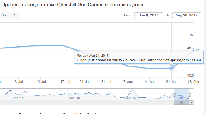 Понимаю, что не сможете понять данный ответ, поэтому приведу график процента побед за сходный период на такой широко изветсной палке-нагибалке, как Churchill Gun Carrier: