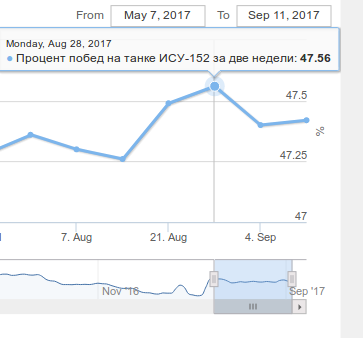 Понимаю, что не сможете понять данный ответ, поэтому приведу график процента побед за сходный период на такой широко изветсной палке-нагибалке, как Churchill Gun Carrier: