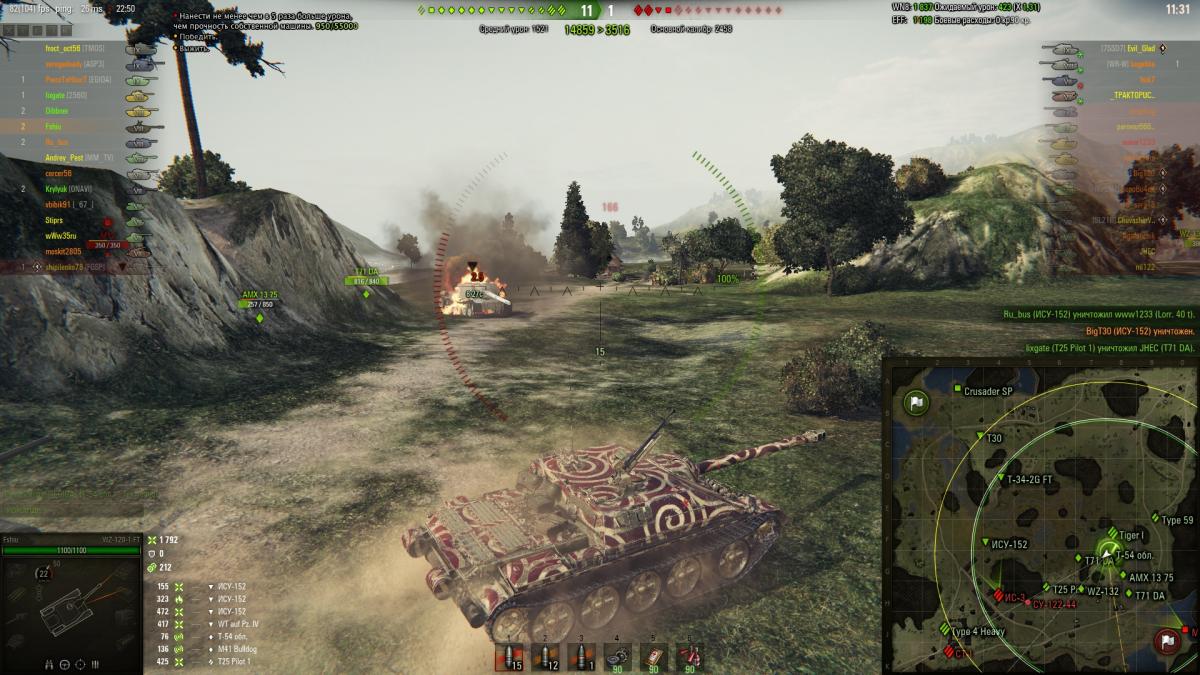 СУ-152 может и неплохой, но однозначно на любителя. Среди прокачиваемых ПТ-7 она точно не входит даже в топ-5 лучших. А вообще хуже зверобоя разве что швед, француз и АТ-7.