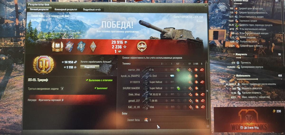 Но когда после изменения дерева исследований с КВ-2 появился переход на СУ-152, решил рискнуть и попробовать себя на этом поприще.