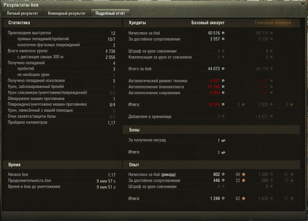 Из оборудования поставил вентиль, приводы и рога. Экипаж хороший с 4 перками. Пт не горит, так что можно ставить доппай (Лично я не горел ни разу). От досылателя пользы не заметил: никогда не было такого, чтоб не хватило этой секунды кд. Игра ведь от альфы идет. А вот комфорт стрельбы, скорость сведения, лишние метры обзора - это помогает. Так что досыл особо не нужен, имхо. ( хотя на деструкторе нужен, но на нем я не играл даже)