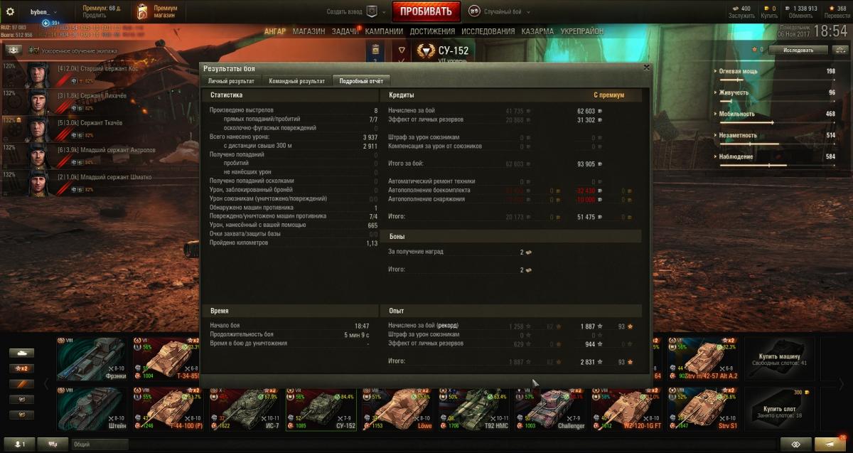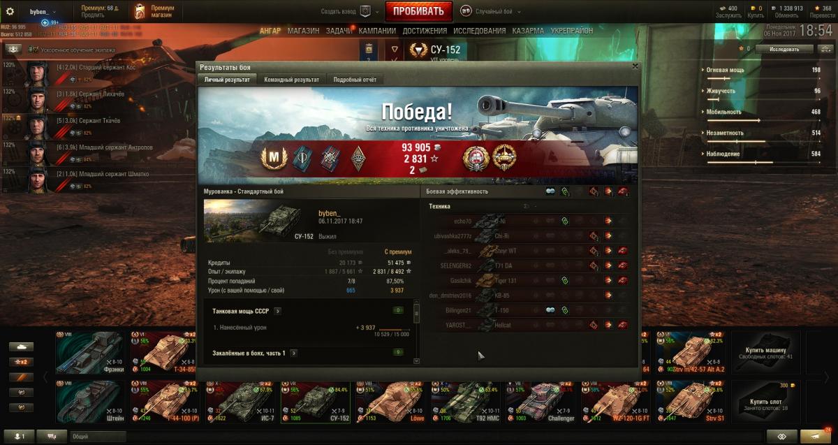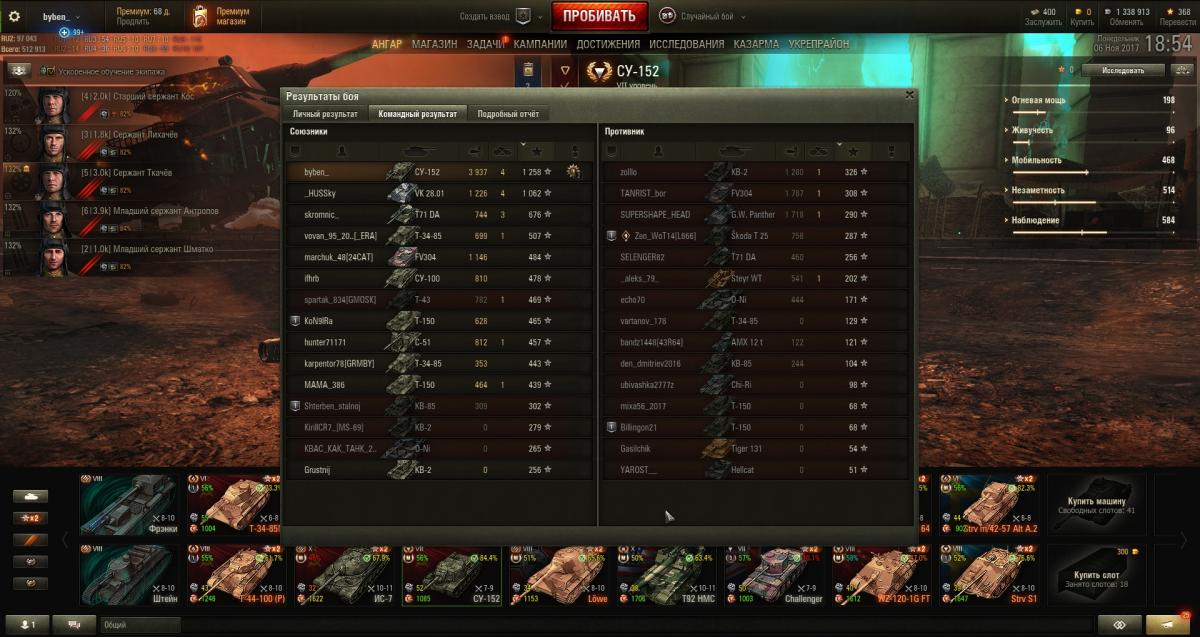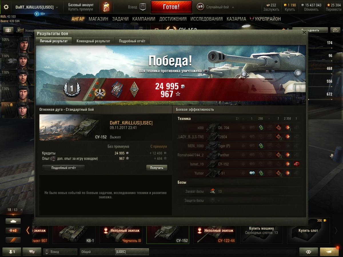 Кошмарно игра сегодня шла, слил урон на Су-152 с 88% до 83%, команда вообще без рук.
