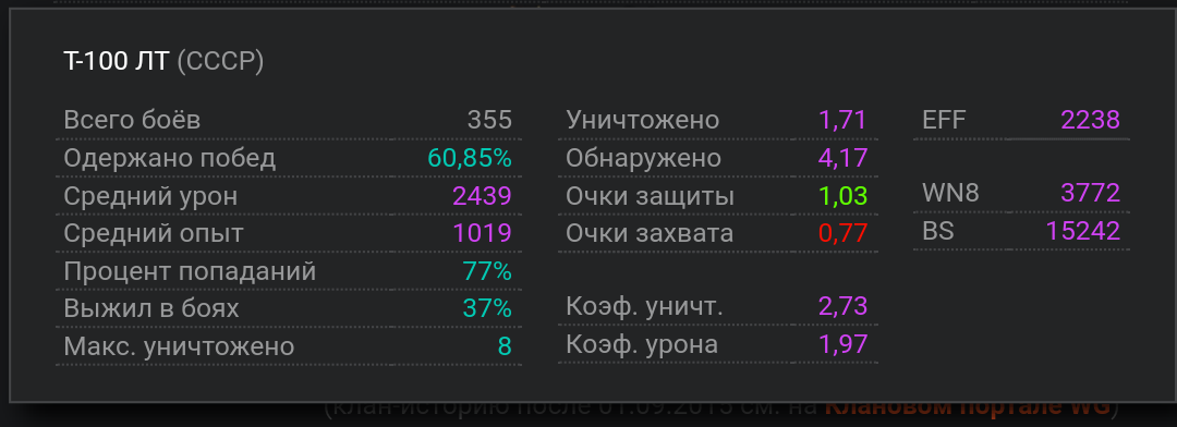 не брат, т-100 не про дамажку. Мы тут не шотники, что бы по 3.8к средухи держать, так что свети. Когда я брал последние 3%, у меня была сессия из 8-и что ли боёв, где средуха была 2750 примерно, а ассист - свыше 3000. С картами везло, гуслил ааатдуши, союзники накидывали, лепота вобщем :)   Так что не упарывайся на урон, всё равно орудие слабее любой ст-шки, существенно. Выгоднее даже непробить, но сбить гуслю в ряде случаев - 300 урона или 1200 ассиста = большая разница))