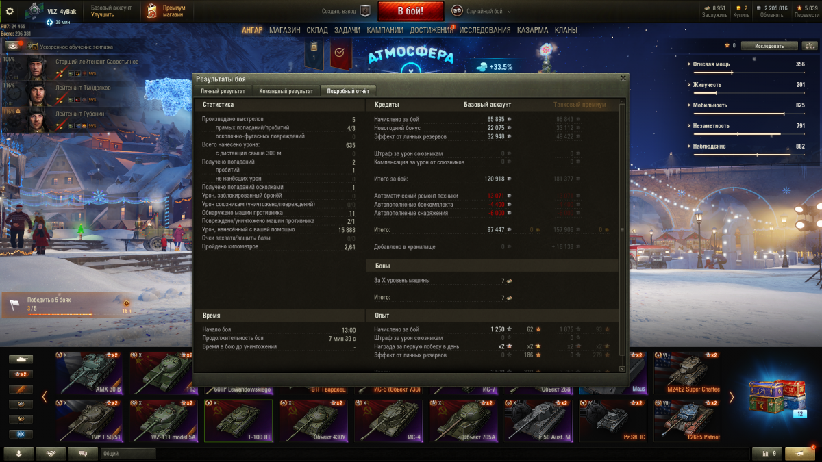952 дамаг, 13457 по разведданным, 2 фрага, 11 обнаружил, остался жив.