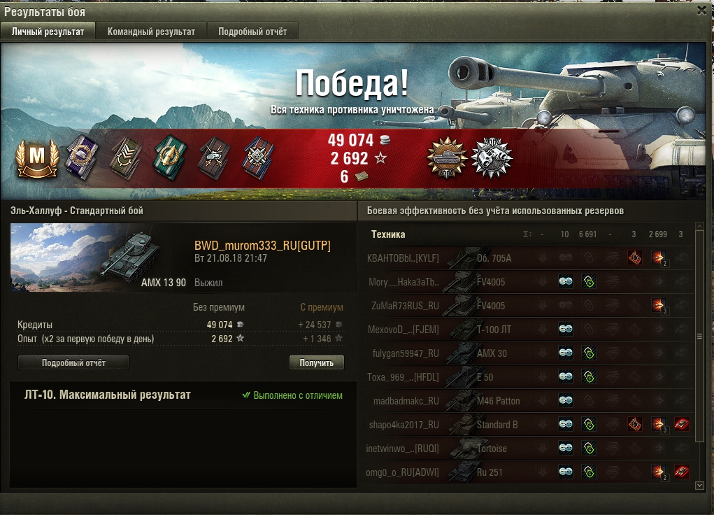 3,21 - сдаешь назад под камень, стреляешь через куст - добираешь 100лт не засвечиваясь. А если и засветился, то прострелять тебя никто не может, т.к. стерва с 704 в канаве, тайпа 61 за рельефом.