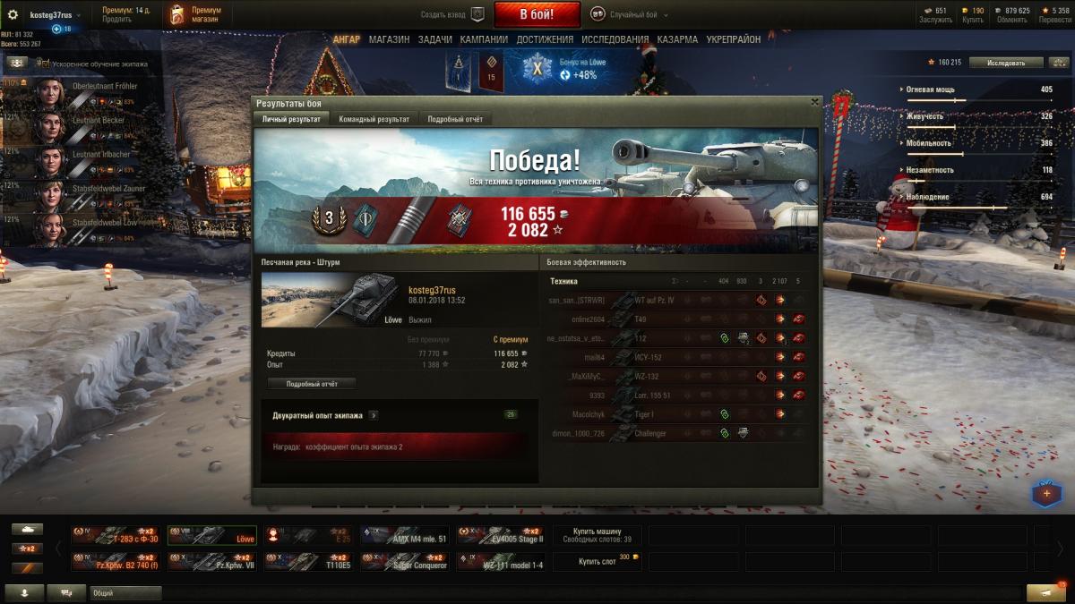 Для примера результаты фарма на Льве (последние бои на вот-реплейс).