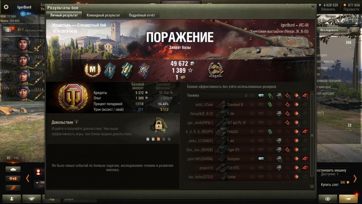 Получено опыта: 4 444 (x2 за первую победу в день)