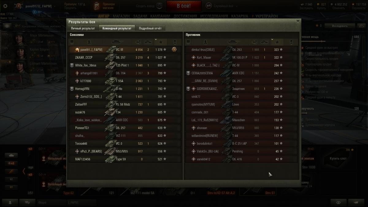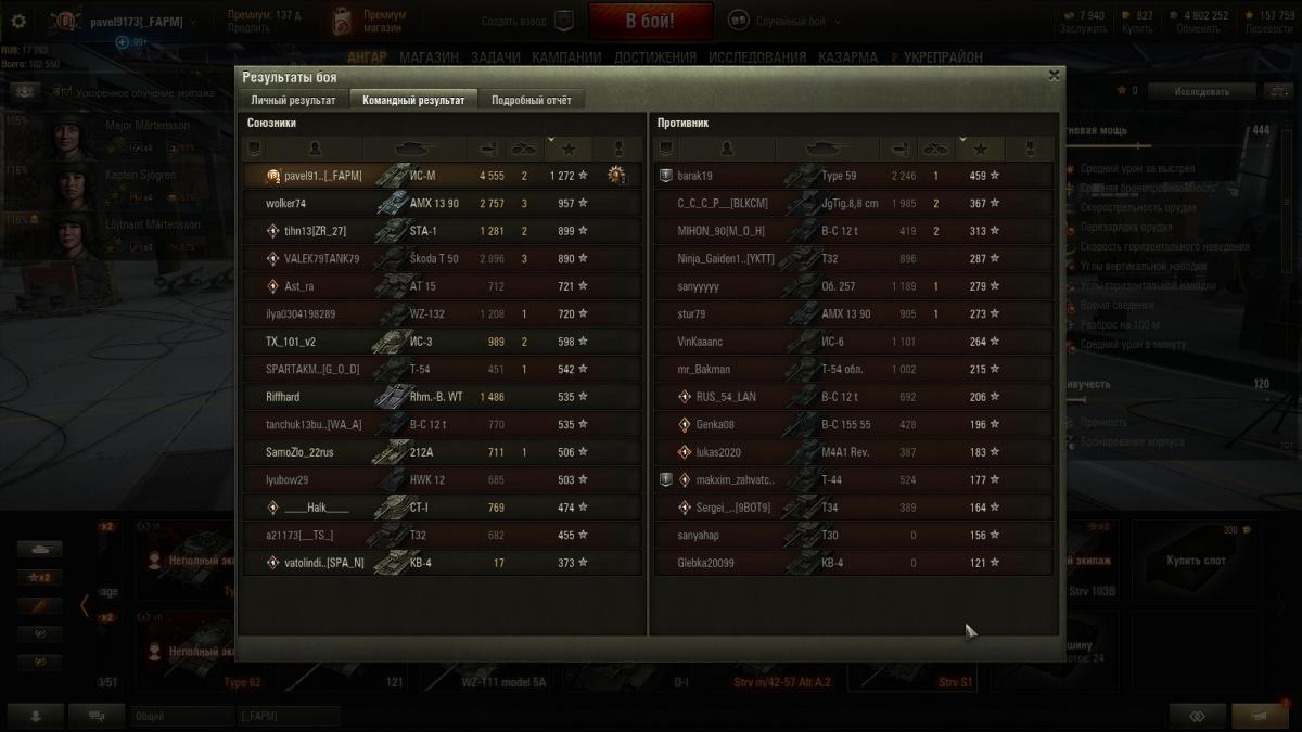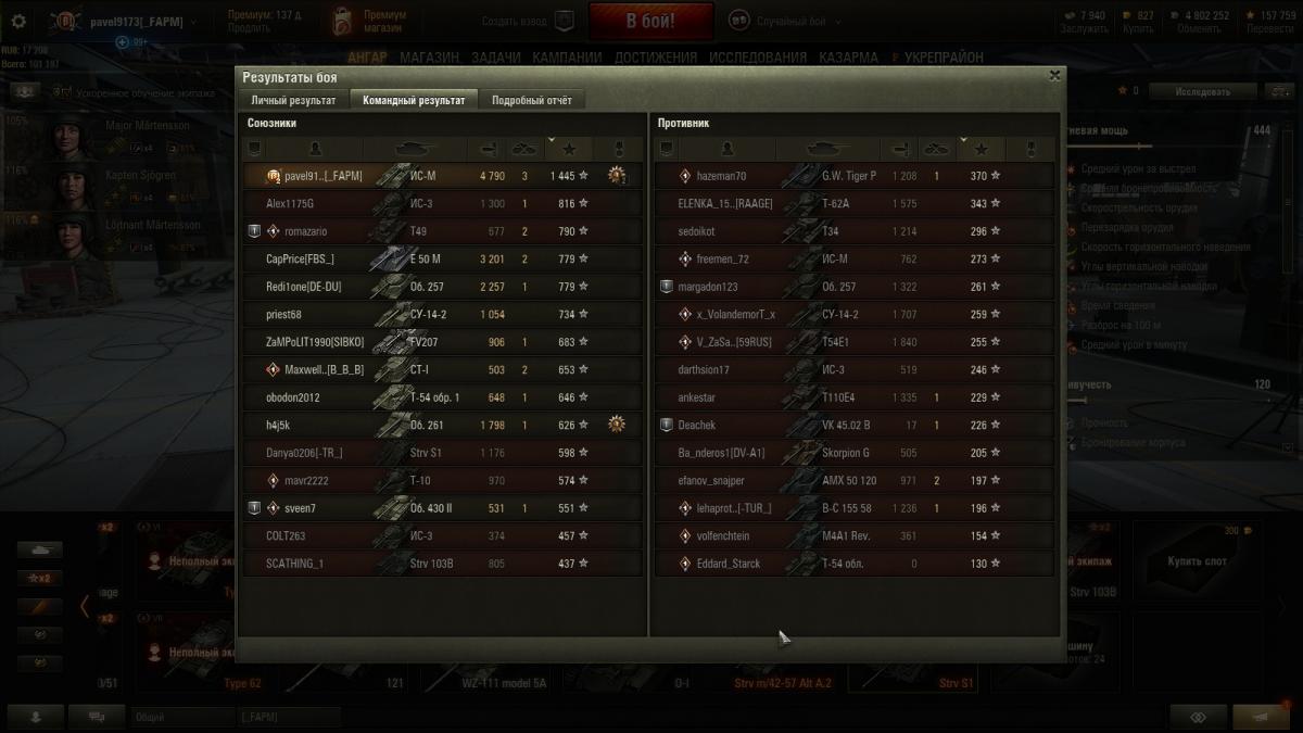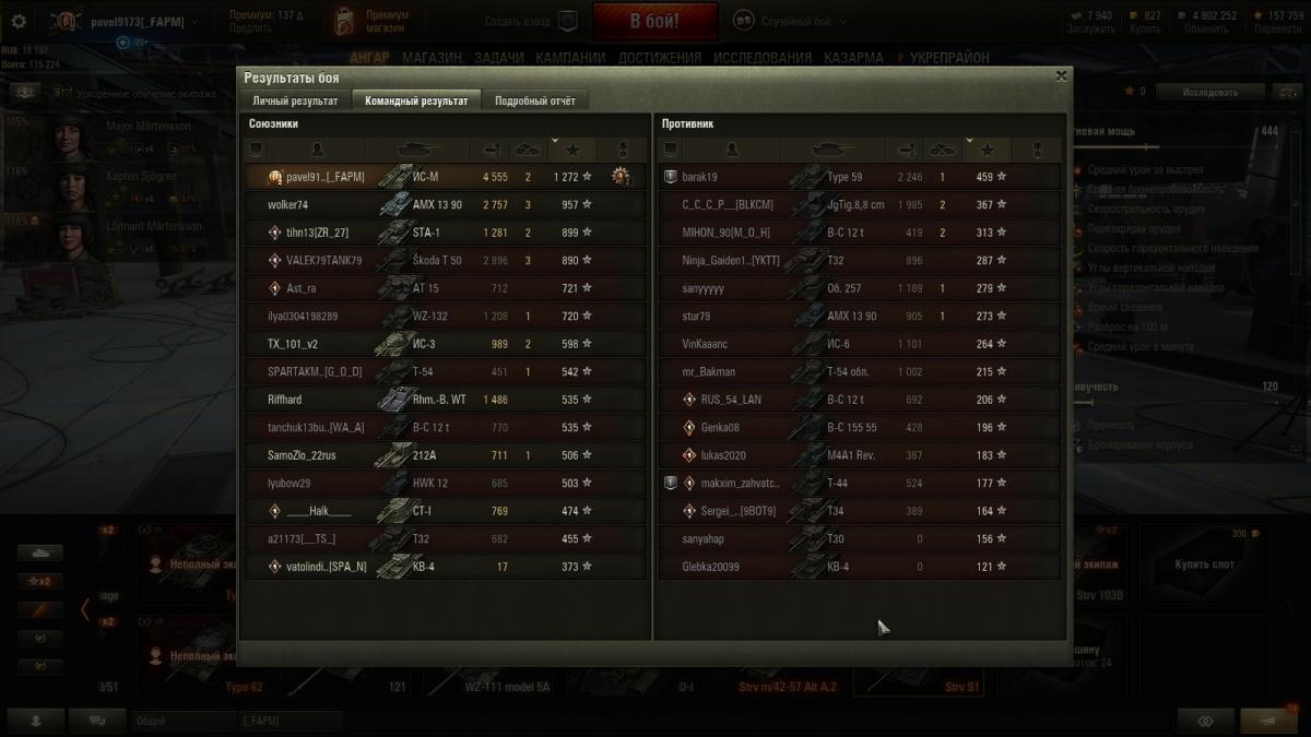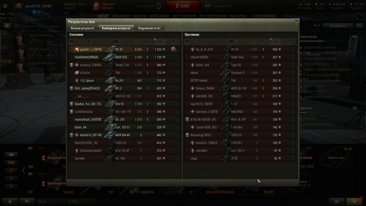 P.S. вчера затащил против шотного вз-120 и фулового борща. вначале пытался вазона забрать голдой, но не брался+ борщ стал на захват, решил идти на фугасы. борщ подставился и получил безнаказанно в лицо на 500+  хп. потом драка с вазоном, он с 1 фугса не умер и из-за этого чуть не умер я, разобравшись с ним, добил борща. борщ стрдалец воббще, после боя посмотрел, крит 4 члено экипажа и 4 модулей  до красна