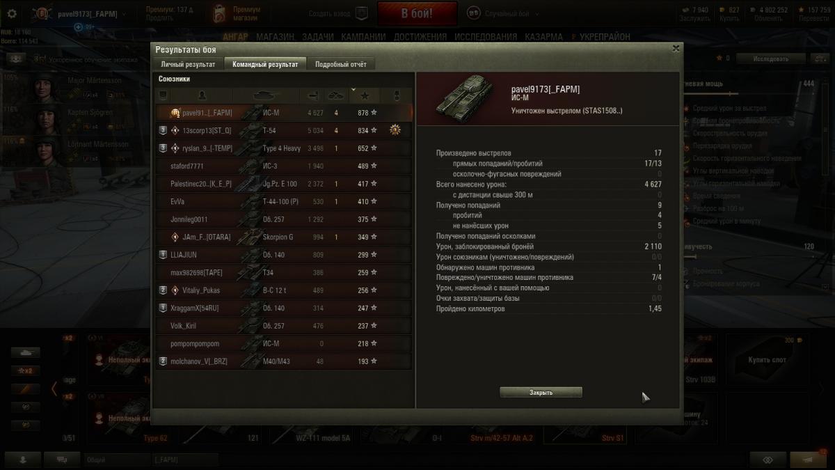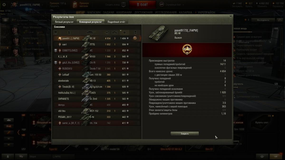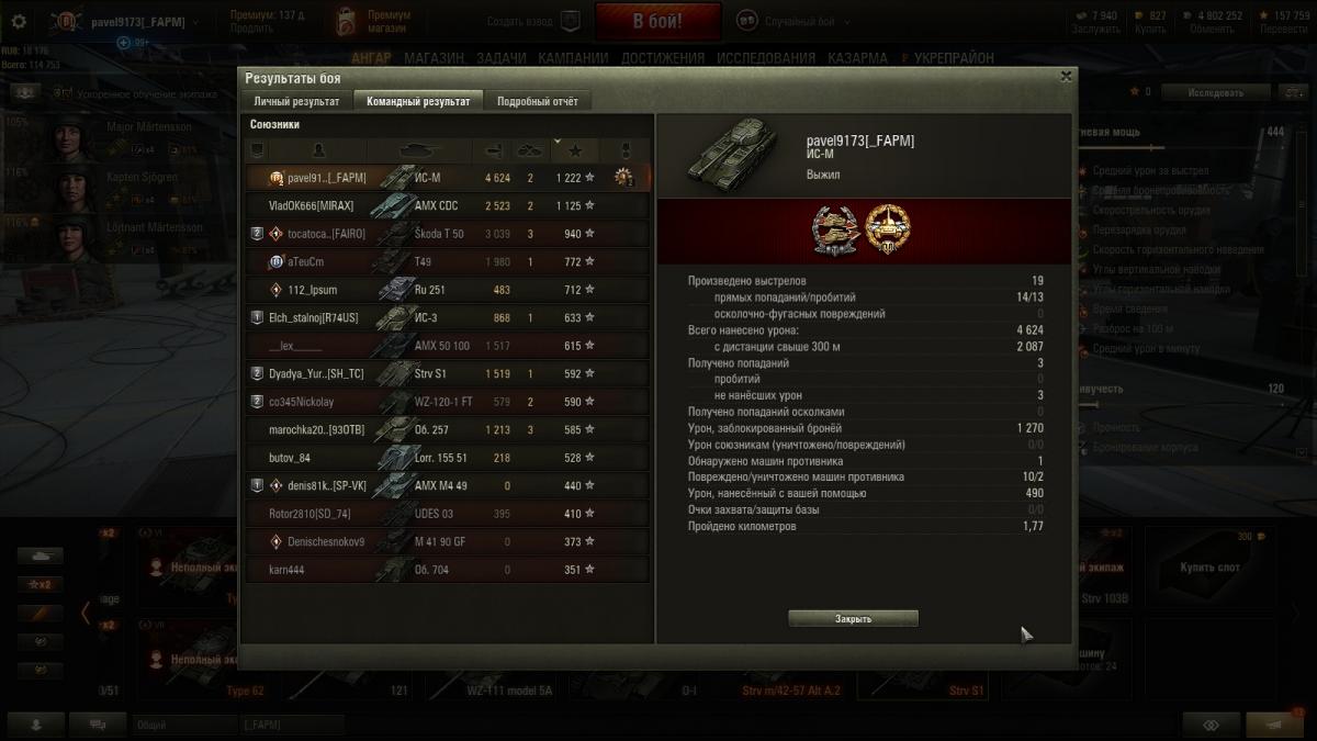 У меня возможно чутка получше показатели и на ИС-М и на тапках. И я даже, честно говоря, считаю, что танчик действительно клёвый.
