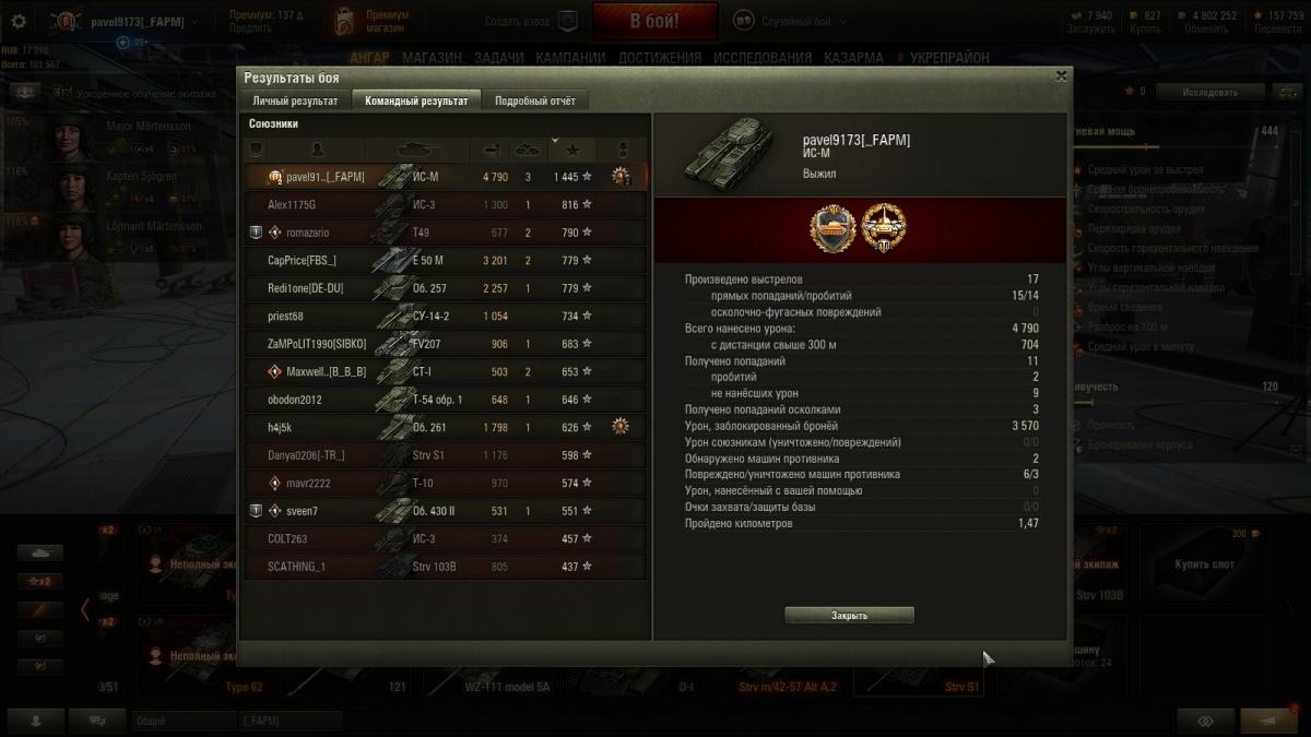 И тапок, и Маус, и тапколев тоже пробиваются в башню прямо в лоб! У вас на ис3 коэффициент заблокированного урона выше чем на ис-м? И с чего вы решили, что тяж должен надёжно танковать голду? И вот чёт не вспомню, когда последний раз видел в рандоме Иса-3го, чтобы он исполнял приём с обратным ромбом, сейчас бои динамичные и в городе все друг другу мешают, пока ты раскорячишься и вывернешь танк задом наперёд.. Вообщем обычным ромбом сподручнее танковать и закатываться за укрытие быстрее. Я вот лично увлечён этим танком, концепция тяжа с задним расположением башни сама по себе редкость, а тут советский и на 8лвл)) давайте будем учиться играть на нём. Просто мастера на нём дают за 1500+ опыта, а это показатель высокий!