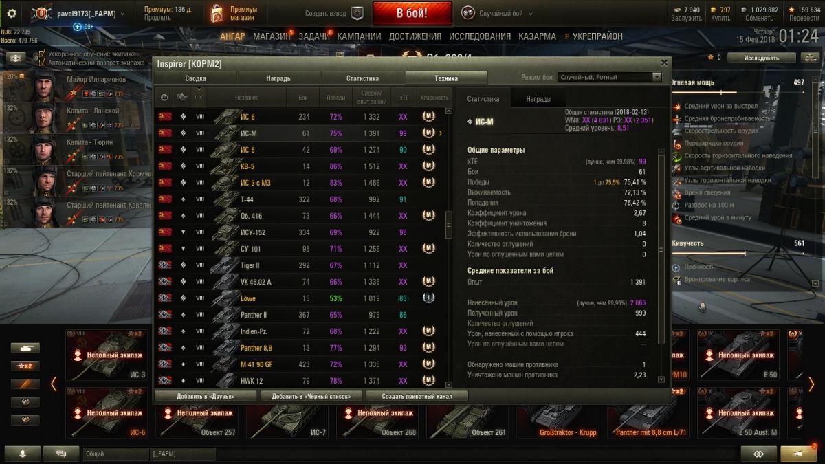 Взводами я не играю от слова совсем. 65-70% это вполне адекватные показатели при нормальной игре. Бывают и отклонения к 60%, но при высоком ср. уроне и хорошем понимании игры это скорее частный случай (на скринах это видно.