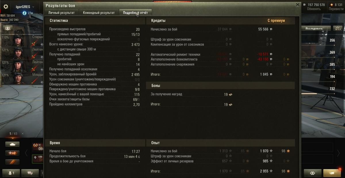 Еще весело по всяким лт из 122 мм пострелять, фугасы сносят по +500 хп. У всяких францев сносит двигло +пожар. Но иногда тупо не прет, и отлетает только 150-200 хп.