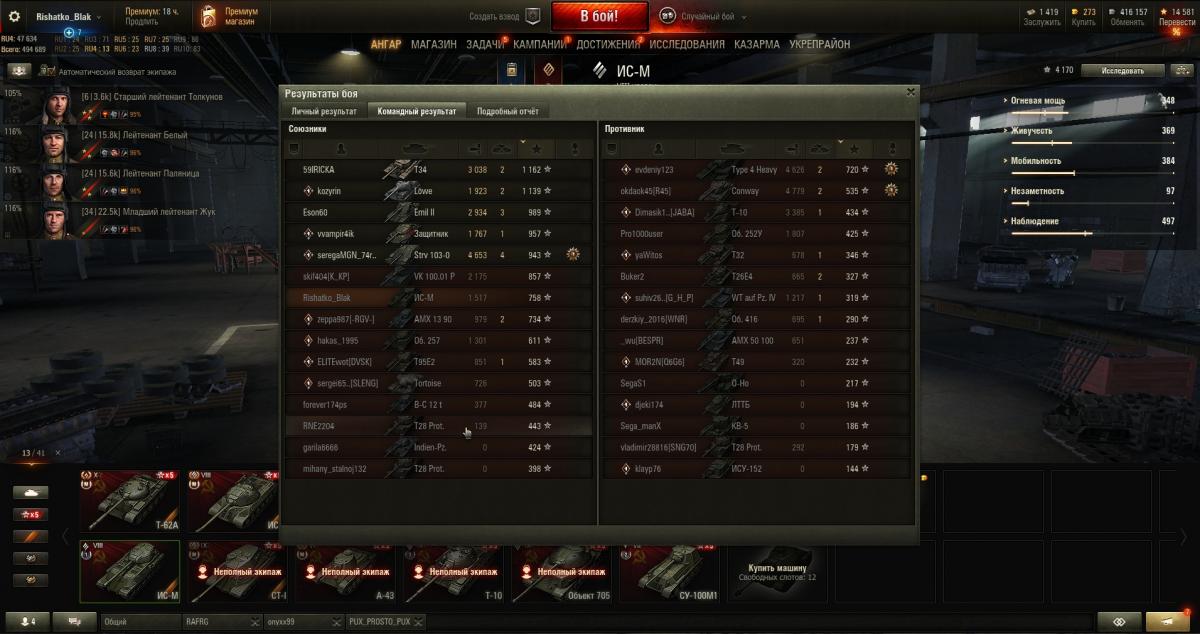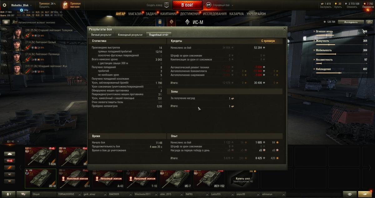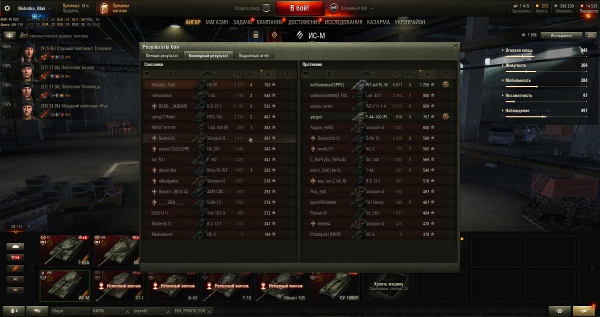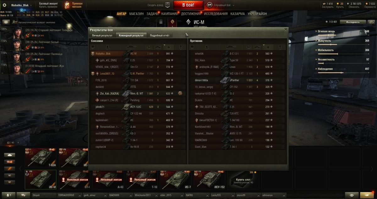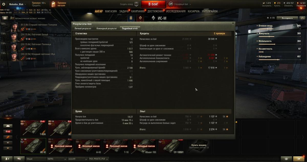 В заключение скажу, что в нашей игре по моему мнению сейчас рулят машины мобильные, с хорошей "вертлявостью" и динамикой и  точностью, поэтому смысл играть на ИС-М я не вижу. Это трата времени, сил, нервов. Прокачиваете за свободку... и то...705 так себе.... как говорил один рокер из мемасов: "Шо то ***** шо то*****" . Для себя решил докачать ИС-М (30к опыта), продать, купить 705 пока скидка и оставить до лучших времен....
