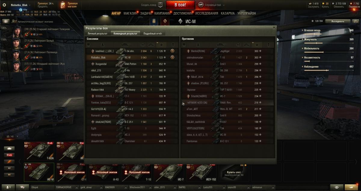 Играл против ИС-М, на 6-7 и некоторые 8 уровней танков - очень жесткий противник этот ИС-М. Но играя на 9 ИС-М - тупо корм. Прямо как Альфа-Тапок - беззубый против 9-10 уровней.