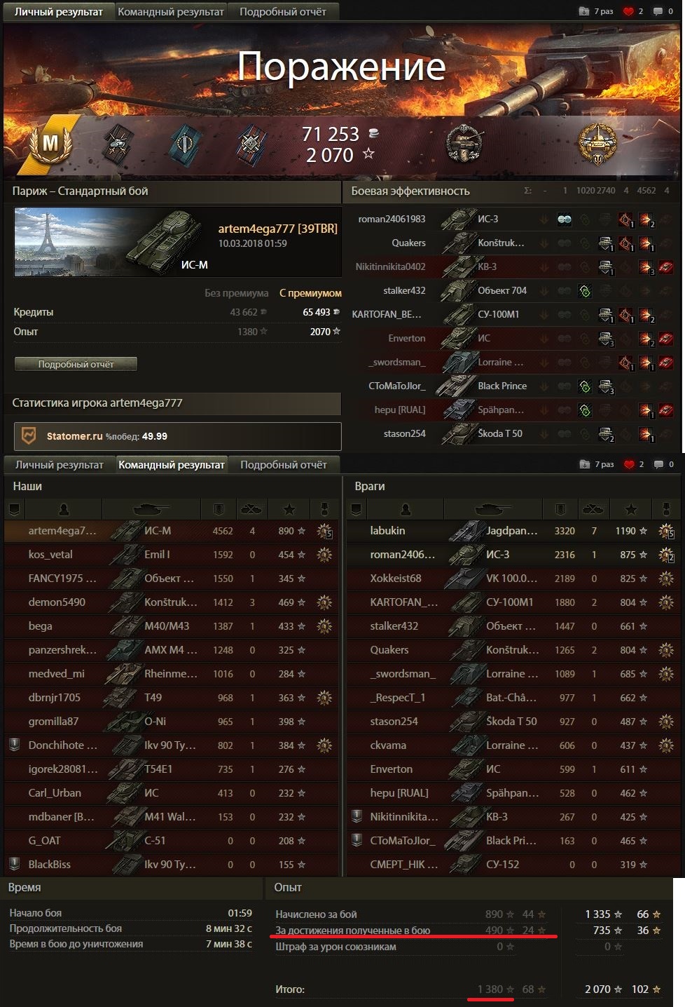 Вот подборка реплеев на мастера за последние дни, все около 1380 опыта.