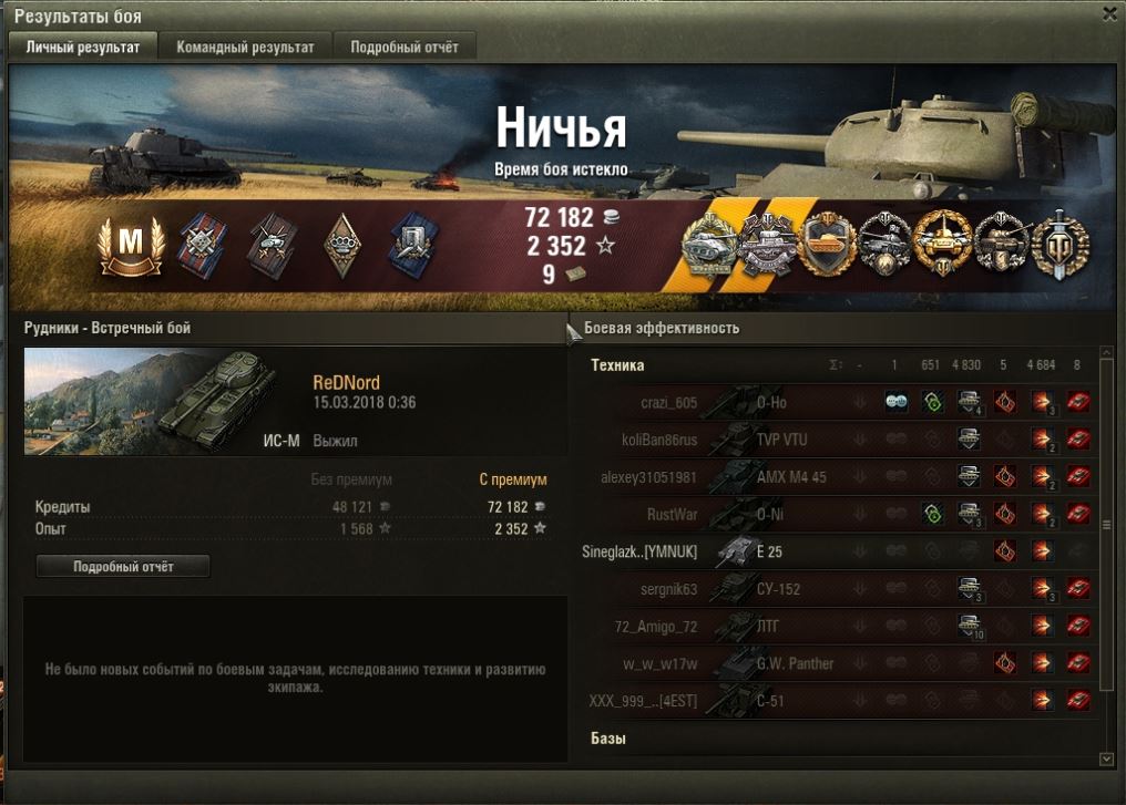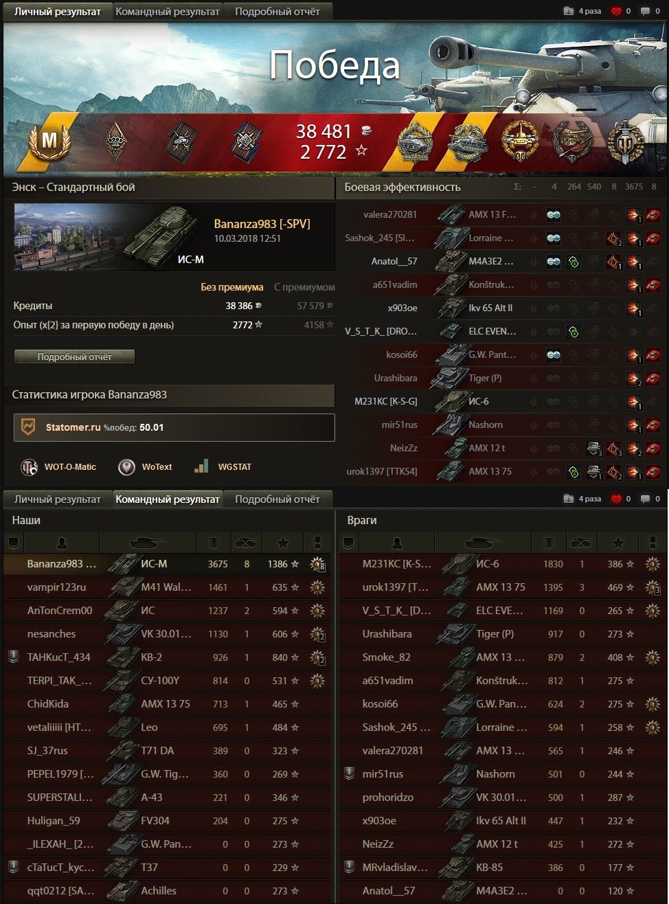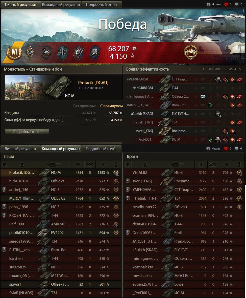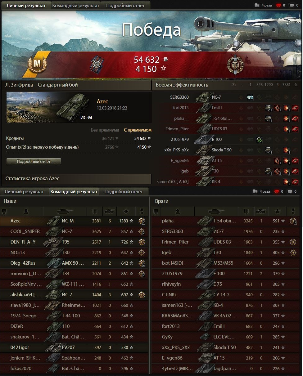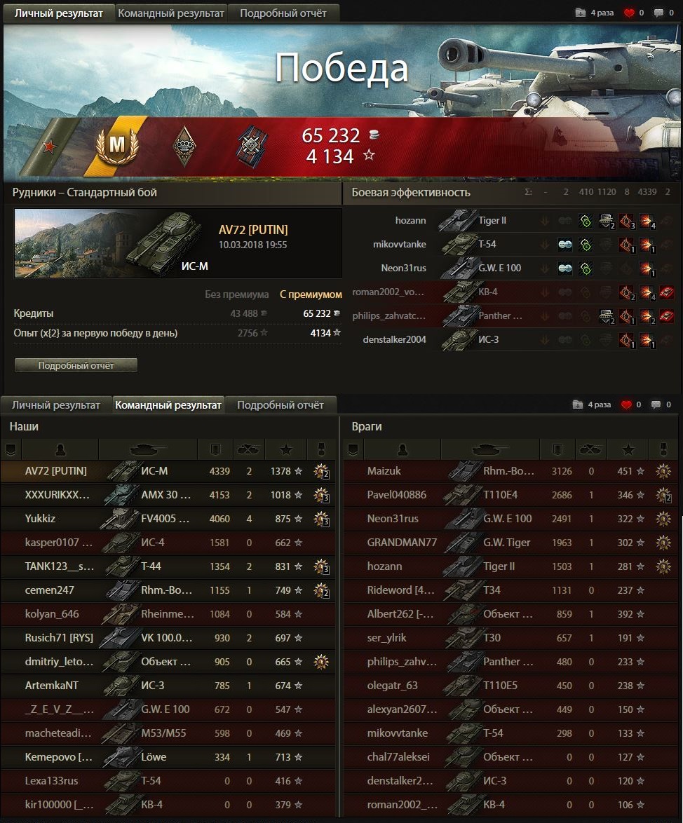 У меня один из крайних боев на ис-м был приблизительно таким - тундра, союзный шотный 257 на нижней базе (чужой респ) против вафли девятки и арты, на верхней базе шотный я против тортойза с 1К+ хп, кв4 с 500 хп, и где-то был и не светился маус 8 лвла, благодаря броне отправил двух оппонентов в ангар, в это время 257 заканчивал со своими и тут выезжает на меня фуловый вк :facepalm: я думал, что на этом бой закончится, но на вк был рачек :trollface: я без проблем отправил его в ангар.