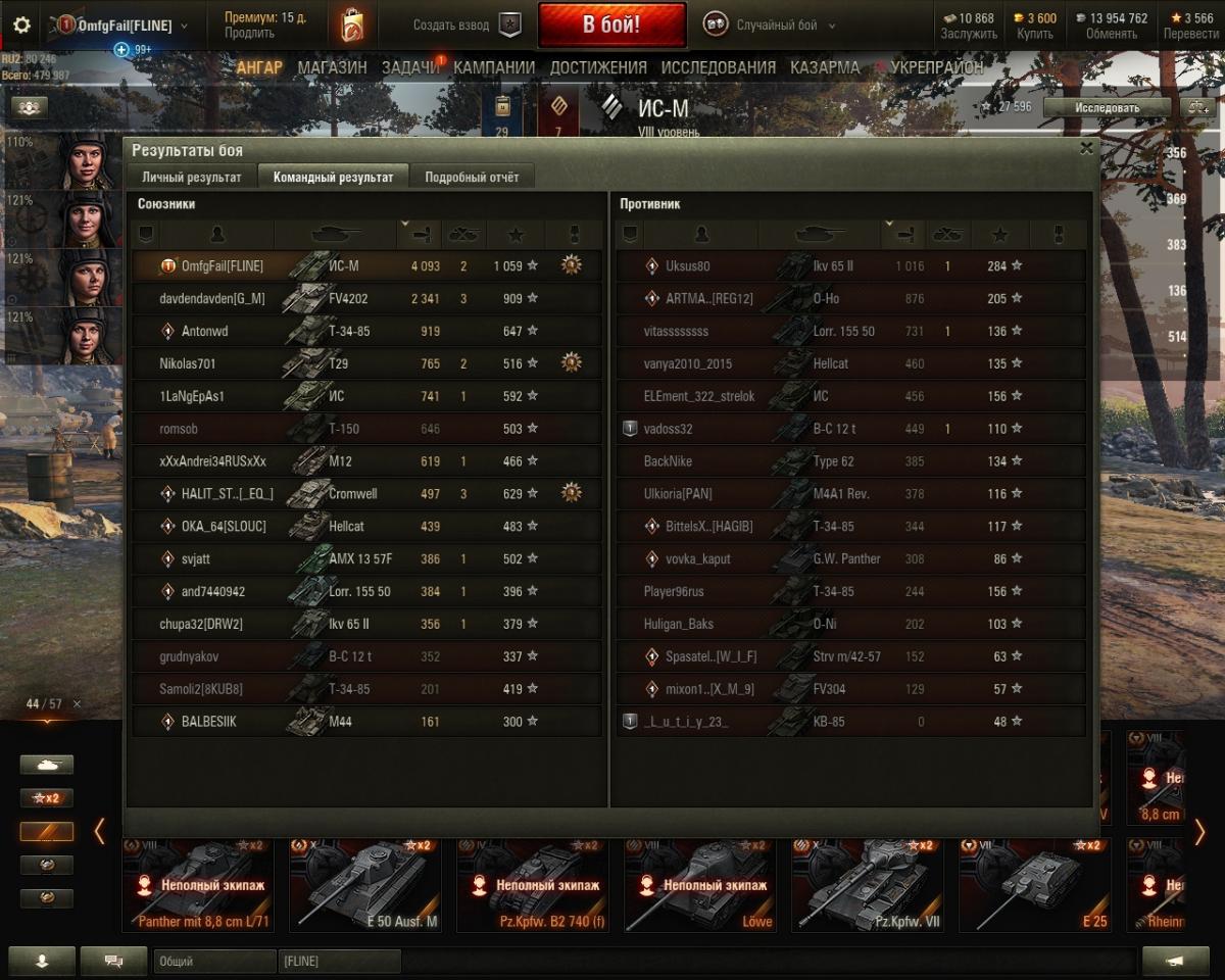 Короче, наконец выкачал ИС-М в полный топ. Вплоть до самого движка - боль, и дело совсем не в орудии, машина совершенно не ехала. Двигатель наконец дал кое-какой динамики и разогнал вертлявость. Пока впечатления однозначные, крепкий середняк, но не более, слишком однозадачная машина. Хороший ДПМ, пробития лично мне хватает, бортом танкует хорошо, в башне нет уязвимых зон. Но машина даже в топовом состоянии довольно тормознутая, углов нет, во лбу брони нет, обзора нет. Танк предназначен только стоять, спрятав морду, и стрелять, а такие машины сейчас в рандоме крайне неактуальны. Но пройти без боли можно, я думаю.