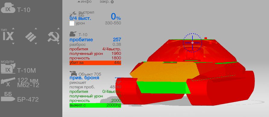 Как бы не особый секрет что танк умелых игроков на 9-10х не держит никак. Особенно этот прилизанный бугорок мыльницы спереди который при подворачивании становится зеленым с выносом БК для почти любых 8 ок, кроме разве что советских линейных тт.  Но танчить красных танк может. Благо он редкий в рандоме и никто так и не удосужился выучить его слабые места (скажем так, красные слабые места вообще не учат). Это ситуативный танк с очень редким набором условностей для нагиба. Выкатал в топ. Основной минус у него крайне слабая стоковая пушка, следующий минус - стоковая башня от иса на которой нам приходится играть с 10ками (по секрету она и для 7ок своей командирской башенкой особой проблемы не представляла) и третий самый главный минус для моего танка в топовой конфигурации - крайне низкая маневренность (не скорость, а маневренность) и именно третий недостаток делает танк ситуативным. У него великолепная броня против неумелых игроков (которых большинство в рандоме) и отсутствующая броня с бортов, но стоит появиться кому то более умелому или смелому и глупому и наша лобовая броня становится не нужна и становится важна бортовая и для того чтобы это нивелировать нам надо или уметь выбирать позиции в каковых к нам не смогут подобраться с бортов или вертеться быстрее. Позиций мало, а вертеться быстрее мы не можем, потому что маневренность у нас вообще никакая, а совокупности с малыми углами УВН это вообще засада, потому что у нас позиций с которых мы можем реализовать свой увн и закрыть себя с флангов на всех картах пара штук. И все они забиты более быстрыми коллегами. Притом танк еще и слепой как крот (как обычно все танки СССР), что еще более усугубляет ситуацию с невозможностью оценки поля боя. В итоге мы хватаем первый, второй снаряд из инвиза, а реагировать поворотом корпуса не успеваем. В итоге, классическое правило советских же иптаповцев про танк и борта замечательно работает против нас.