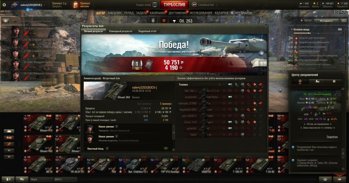 Согласен. И вот как раз по поводу крепкого борта ИС-М - мало того что Т29 пробил борт под углом в районе машинного отделения - на границе с боевым, так ещё и подрыв БК! Справедливости ради - я в тот момент как бы в другую сторону смотрел - а точнее только что от арты получил и показывал нашим где она - слева в центре города на меня неожиданно вылезли - они меня видели, а я их поздно заметил - перед этим в проходе противника разложили и я светился.