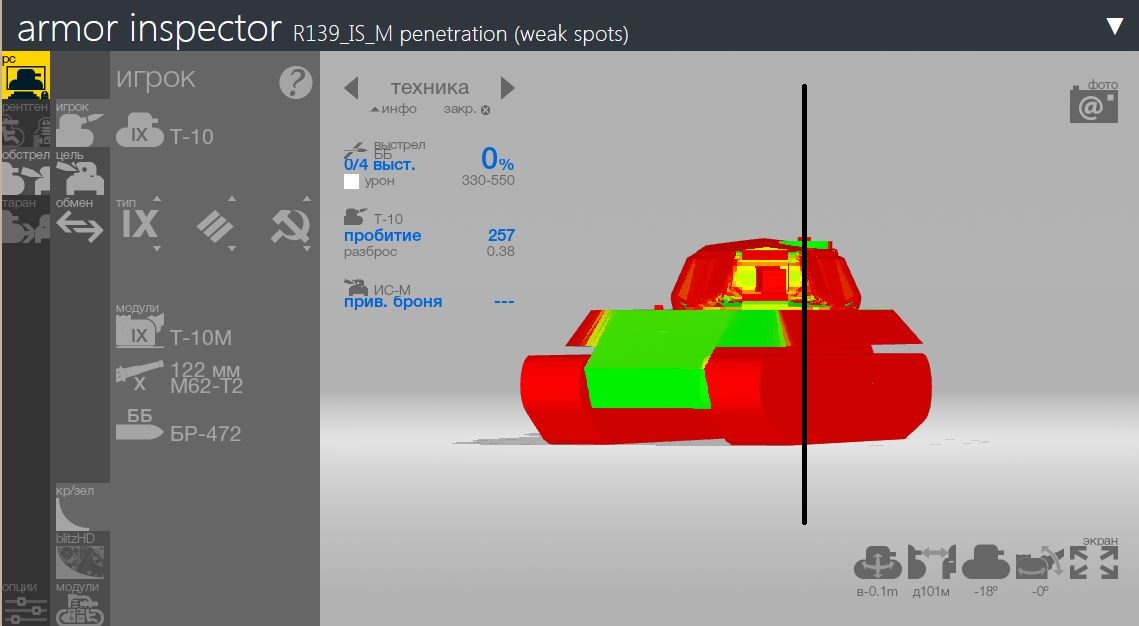 Какие на.. 200 мм - это я, что ли, сказал про танкование именно бортами? Можно кучу скриншотов с пробитием у ИС-М именно бортов под всякими углами привести - сейчас у него всё топовое стоит, в т.ч. и башня - на 096 скриншоте - смотри под каким углом башню шлёпнули. Кроме того! ТС привёл заштрихованную зону ВЛД, которую нельзя показывать противнику - а это значит, что, если ты попробуешь выехать под слишком большим углом, обеспечивающим рикошет вражеского снаряда - ты или покажешь противнику заштрихованную область ВЛД и пушка попадёт по цели, либо ты не покажешь заштрихованную область ВЛД, но тогда твоя пушка будет упираться в препятствие, за которым ты прячешь корпус, и твоё танкование имеет смысл только для набора заблокированного бронёй урона, но попасть по цели, нанести ей урон и уничтожить ты не сможешь. И доиграешься до того что тебя либо их арты грохнут, либо иные союзники противника, особенно те, кто имеет фугасы более 150 мм - попаданием по тому же твоему борту, т.к. фугасы не рикошетят. Похоже что борта там неравномерной толщины - те попадания что на снимках происходят, как правило, прямо в нишу борта над гусеницей. Хотя, тут нужно собирать больше информации.