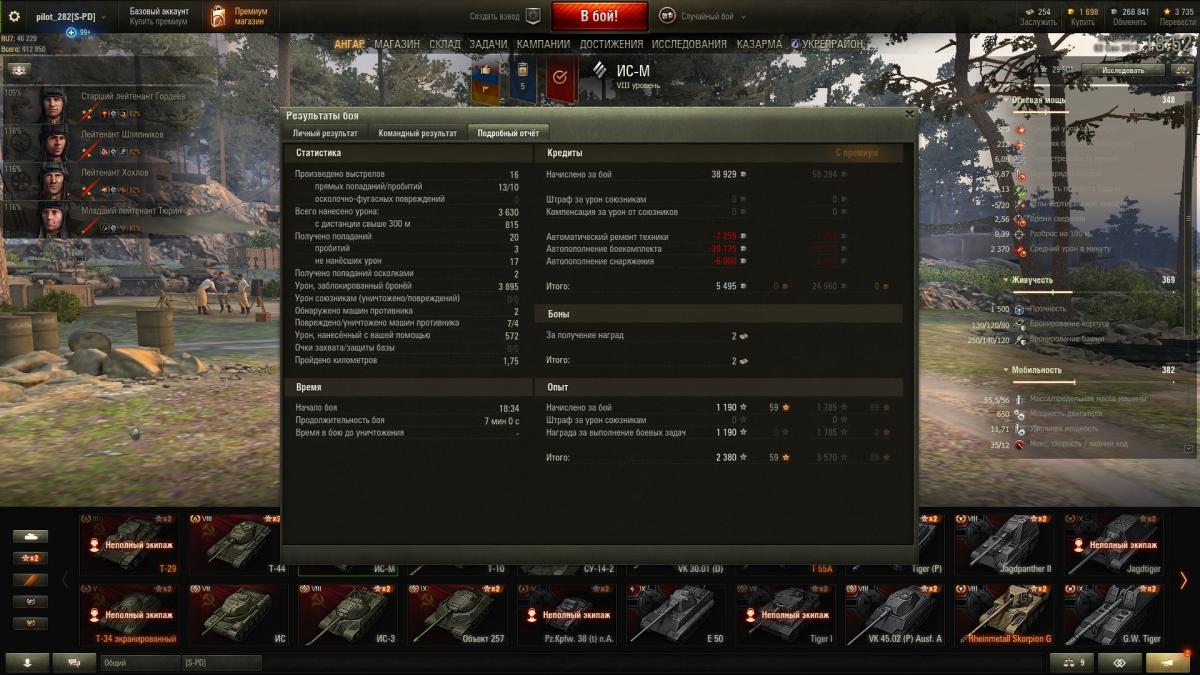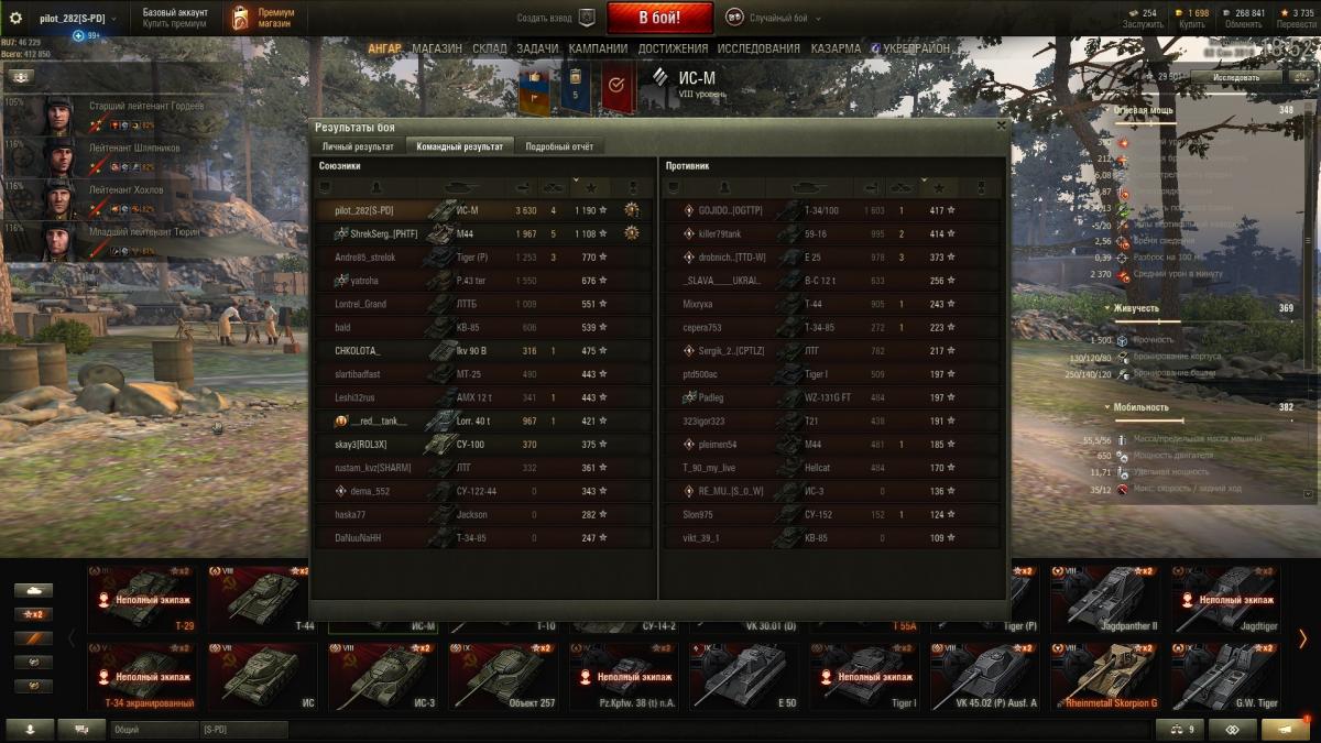 Я еще раз повторю, у ИС-М убого все: орудие это просто кривая х....ь, не могущая пробить даже картон, недоделанные фугасы, не наносящие урона, голда с таким пробитием, что проще ездить без нее, отсутсвие УВН, броня не защищающая от 8-10 лвлов, слепой, с постоянно контуженным экипажем или сломанными модулями (очень часто, разом выбивало двиг + водилу, и если еще ремка и аптечка не восстановились, то эта *** отказывалась поворачивать напрочь), горящий раз в 3 боя, ползущий даже по хорошим грунтам и с поворотливостью гоночного трамвая. ИС-М играется в минус, даже без голды и голдовых расходников, да у меня 9-ки, минимум в 0 играют, а здесь такая засада, на 8лвле, я помню только одно угребище, тоже играющее всегда в минус - это 416-й, ну в общем два сапога пара. На этой печальной блевотине, даже "М" дают, за 1.1К опыта.