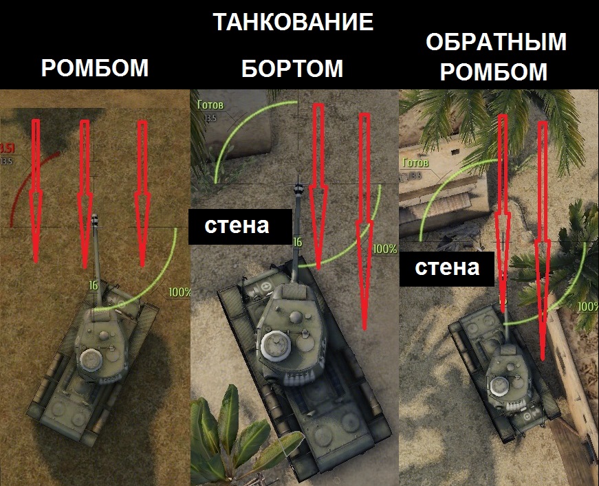 Обратный ромб - это стоя задом на перед прятать корму за стеной. ИС-М танкует бортом, пряча нлд.