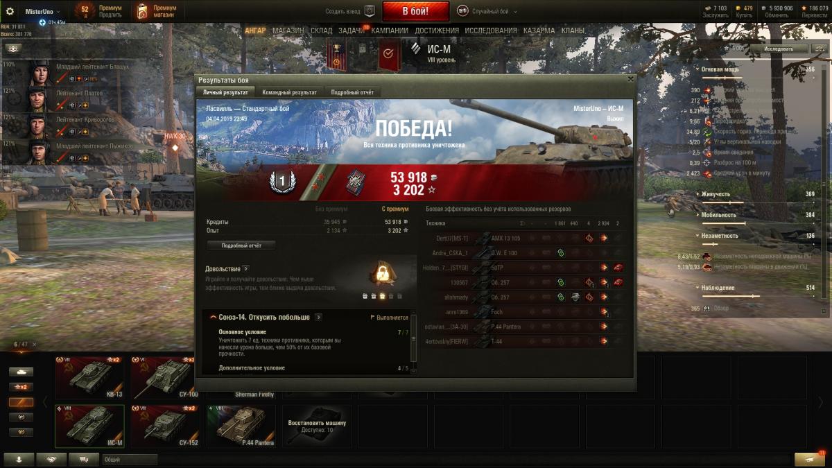 В итоге получается, что это слепой танк, который не может наносить урон, не может нормально перемещаться, не может выживать, он не может вообще ничего. Потрясающе. Я уже решил, что больше никогда не буду качать 10-ки, но благодаря ИС-М я не способен нормально докачаться даже до 9-го уровня.