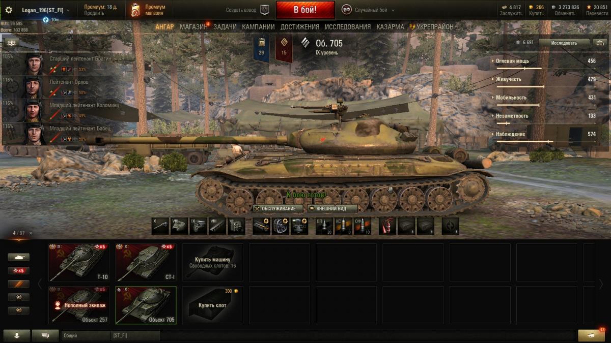 ....705-еще то убожество,хвалят его мазахисты.....пушки совковые еще можно терпеть,но почему ему спереди забыли броню нормальную для ТТ 9 уровня поставить ?  Приходится постоянно передок в бою прятать,иначе разносят молниеносно и арта его очень любит за его размеры....короче- *авно полное...