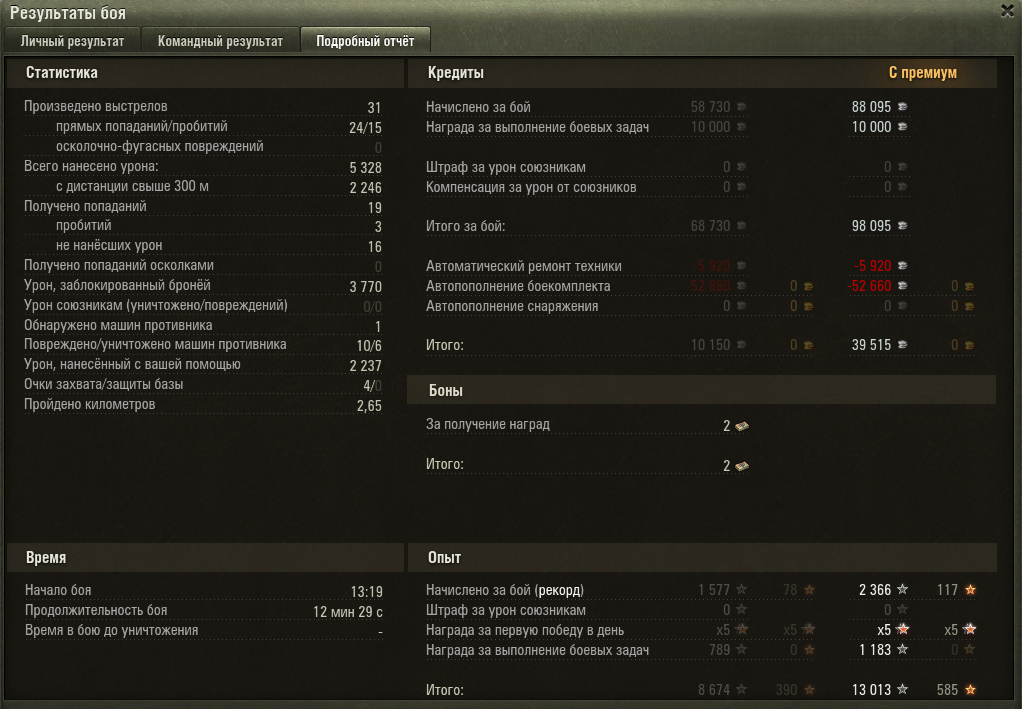 Нет, спасибо. Считаю глупостью выкачивать 145 тысяч опыта на полустоковом танке. Я в игру не как на работу хожу, чтобы получать "такое удовольствие".