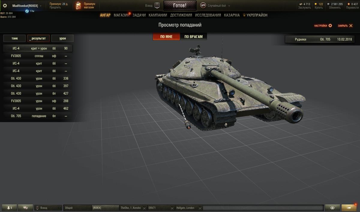 Броня у танка есть это факт и она неплохая, но сильно хуже чем например СТ-1 (я имею ввиду борт, лоб пожалуй у 705 получше, в ВЛД меньше карают). Тут главная неприятность случилась со мной. Пройдя ИС-М я привык к хорошей бортовой броне, честной. А на 705А она вроде есть но при этом как бы... в такой вот ромб как на картинке, в нижнюю часть борта меня постоянно пробивали орудия 225+ мм. В общем танки вроде ИС-3 или Scorpion G меня неоднократно отправляли в ангар через мой "имбаромб" под мой удивленный возглас КУДААА КААААК. Благо есть мод на просмотр попаданий в ангаре и я мог посмотреть куда меня просадили и чем. Лишь для примера скрин под спойлером как меня отправил в ангар ИС-4 бронебойным снарядом. Вы только зацените под каким углом туда залетело.
