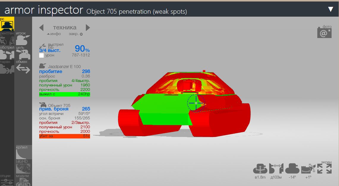 У меня вчера наоборот было. Играл на мойсхене(Маус 9лвл), попал на Химки против 8лвл. Против меня взвод из 2-ух 705-ых, вот стою на банане, как положено нлд за стеной спрятал, даже вроде бы лючок на башне справа и не должен быть виден врагу. И всё равно почти разобрали меня эти 2 совета, как бы я башню не отворачивал, не мансил, в этот лючок как заворожённые они мне стреляли. А сам 705-й мишень не сказать чтобы лёгкая, вот он в ромбе передо мной(хорошо, если неподвижен), нлд вроде как самая слабая зона, но я стреляю сверху вниз в него из-за высоты своего танка+ромб противника дополнительно добавляет приведёнки там. Короче в нлд надёжнее всего стрелять, но при условии что оно не спрятано и сможешь попасть при активном мансовании соперника. Пробовал в передний каток стрелять, через раз пробивается, наверное если враг перекрутит ромб-то и в каток, да и в сам борт ниже экранов пробьется, а при более остром угле хорошо держит удар. И у него нет этого скругления-переход влд в борт, как у ис-м, поэтому и выцеливать то нечего у 705-го в правильной позиции... Разве что крышу башни, но она у него явно покрепче чем у ис4 например. Может калибрами 150+ она и пробьется, но маусганом только если сильно сверху вниз стрелять. Думаю, что 705-й слабее бронирован, чем остальные подобные заднебашенные ТТ одноклассники, но он явно шуструе их, успевает довернуть вовремя, спрятаться или наоборот поджаться ближе к врагу. Опять же, я на бб-шках играю в основном, и ими нужно реально выцеливать уязвимые зоны 705го. Вероятно голдострелы не испытывают сложностей с пробоем бронированной техники, и сами владельцы такой техники не испытывают комфорта игры на своих машинах, если вся роль их брони призвана утяжелить их танк и снизить ему подвижность. Так вот сложилось, премиумные снаряды есть, а премиумной брони от них нету)).