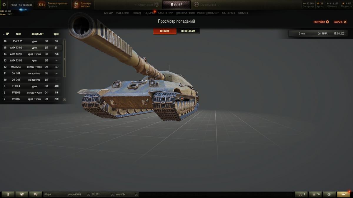 У меня было предтоповое орудие исследовано от ветки иса7.Гусли придется поставить так как на стоковых вообще не поворачивается.Двигатель исследовал но какой то прибавки к скорости не видно.Орудие поставил от иса7 тк урон больше( в турбосливе урон всегда минимальный 400 выскакивает) Ещё заметил что эта пушка часто не пробивает Прем итальянца 8 уровня проджетто 46.Я уже жалобы писал в службу поддержки че за ***,но они кидают отписки с какими-то сказочными скринами из которых не ясно каким .... Было непробитие.Претензия к танку одна -при низкой подвижности слабая броня,восьмёрки шьют навылет.Топ башня крепкая но пушка не гнется ,поэтому приходится корпус выставлять,сразу пробивают.Если мансить корпусом то рикошетит но тогда не сведешься а без сведения не попадает дахе в упор. Может неплохо играть от углов здания на городских или от выступов скал или камней но нужны союзники адекватные а то держишь направление а вокруг союзники быстро полопались или бросили тебя одного,а противники толпой накинулись и разобрали.Брони нет как например у алкашей или маушена которых например семёрки в корму и борта даже голдой не пробивают. Этого недотапка семёрки даже в нлд пробивают