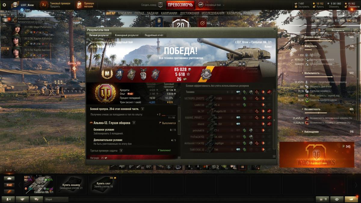 Просто тут вот в чём дело. Цент по ТТХ не кажется прямо таки убожеством, которое ни во что не может. Нет. У него есть вполне неплохая маска, обзор, пробой на БП, финальная точность (раз через раз, но это не 0.6 как у каких-нибудь кв-2), хорошие УВН. Он может показывать хорошие результаты, но вот насколько стабильно? И насколько хорошие? Современный рандом - это безудержная вакханалия упоротых ололо колёс вперемешку с барабанными\полубарабанными имбами. И вот в таких боях трёх-четырёх минутках чуду британского танкостроения очень не хватает вменяемого ДПМа и скорости сведения. Пока он сводится\КДшится - противник уже убит\почти убит. В итоге что-бы настрелять нормальные циферки урона тебе приходится постоянно потеть\максимально бустить танк для комфорта игры. И тут возникает самый главный вопрос: "А зачем?". Зачем потеть на Центурионе, если можно взять Шкоду\Стандарта\430 и спокойно кататься в удовольствие настреливая по 3к.