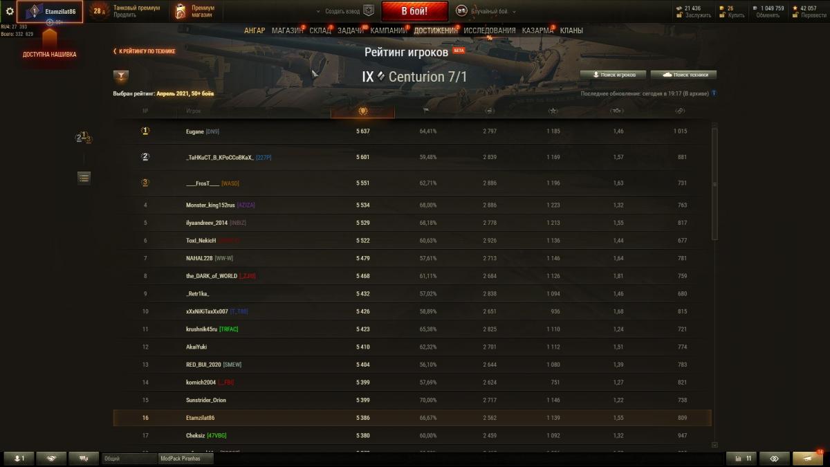 зал славы за апрель выглядит удручающе.. за такие убогие результаты 16 место.. это лучше всего говорит о танке