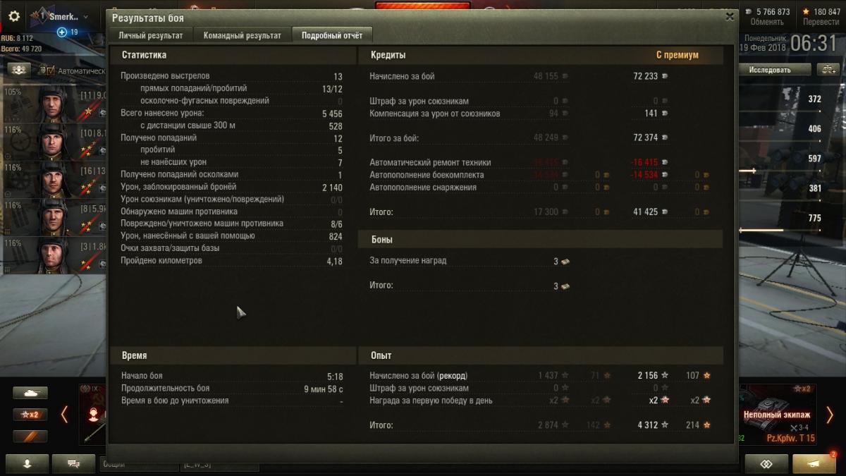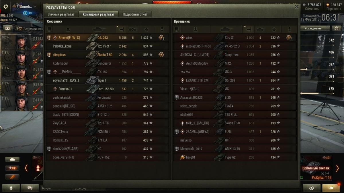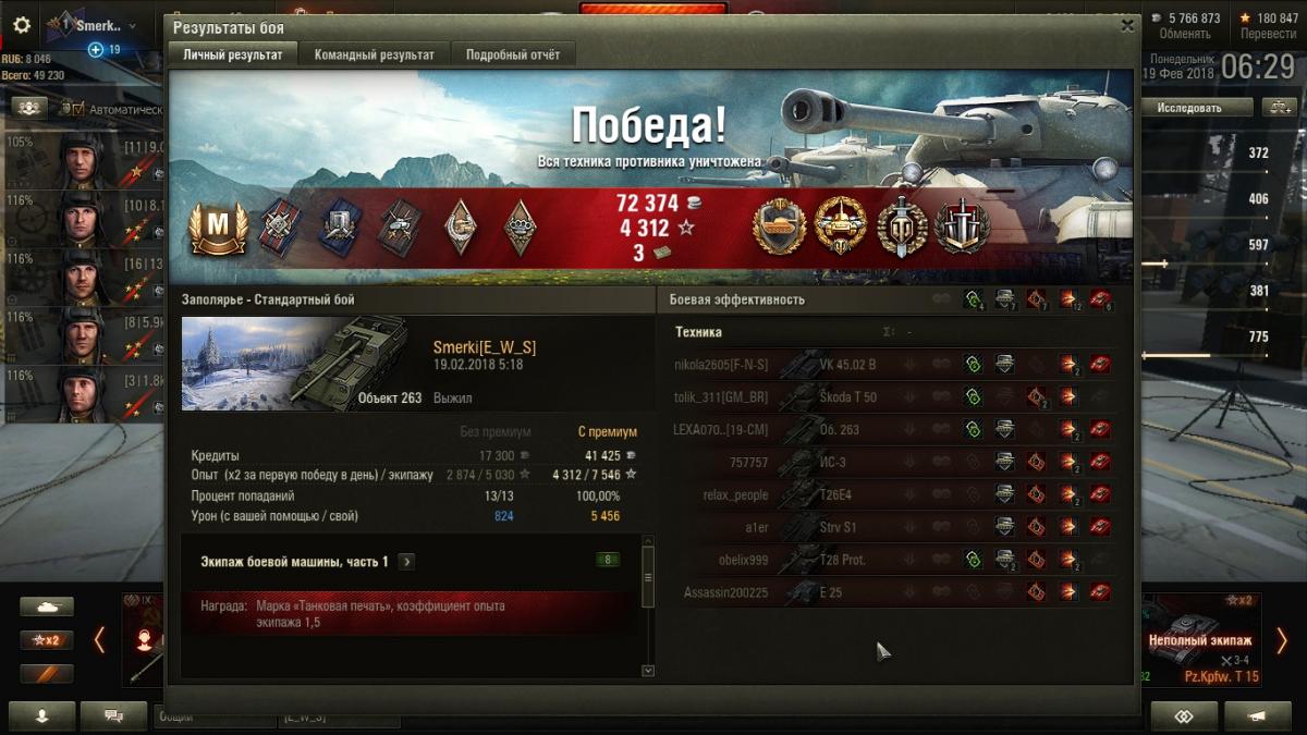 Тем временем, зад сгорел и 263 был продан после 16 боёв. Так и не понял, как нормально на этом играть, да и память о былой играбельности сделала своё дело. Всем удачи)