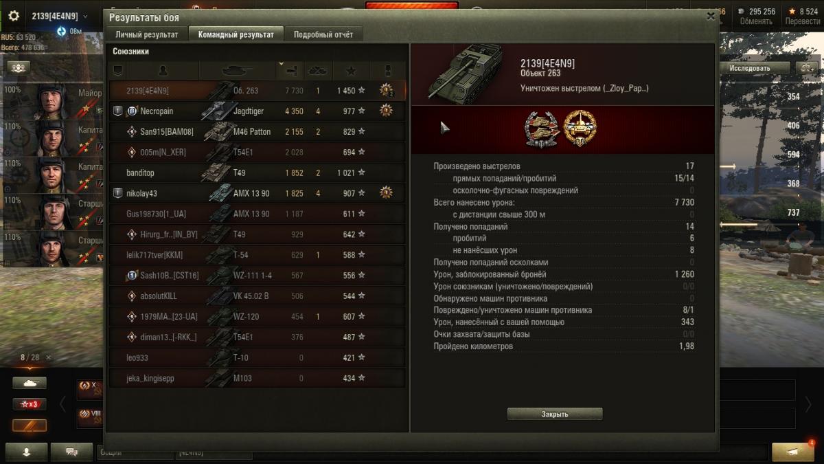 При этом стоковый 263 это какой-то кошмар - он не ездит и не ворочается. Причём не ездит он просто, а не ворочается вообще - чувствуешь себя на старой Т-95. Только вот у амера непробиваемый лоб, жЫрнющие борта  и практически не берущиеся с дамагом катки, а здесь, мммм - всё наоборот! Хотел первым взять движок, но не вытерпел, вкачал вначале гусли - и пожалел, улучшенная ходовая почти ничего не дала. Только когда поставил двигатель танк стал более-менее крутиться. С топовым стволом, наконец, на нём стало не противно играть - разброс по-прежнему ниачём, но попадает нормально, видимо, скорость полёта снаряда выше, ну и альфа приятнее - пару раз видел 600+, а за несколько боёв до топствола сток дважды выдал 330 дамага. Ух, нагибает!
