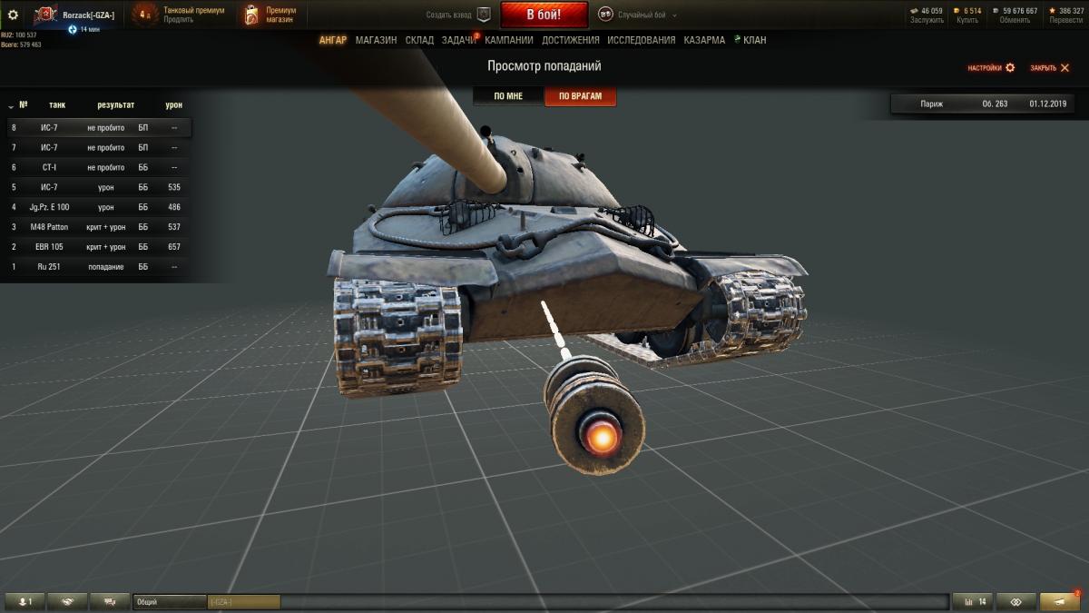 Сначала я думал, что мне кажется, что альфы вылетают в районе 480 при средней в 550. Но после этого боя все стало на свои места (ниже скрин). Из 6 полных пробитий все 6 с альфой ниже средней. Точность (точнее, ее отсутствие) не позволяет играть на дистанции от слова совсем. Следовательно, нам остается только вообще не играть на этой ПТ, т.к. на близкой дистанции вас будут пробивать вообще все ББ-снарядами. Псевдоброня танкует только тогда, когда у большей части населения Марса хорошее настроение. Топовые двигатель и гусеницы ставить не вижу никакого смысла, т.к. эффективности это добавит совсем немного, а страдать придется на 70к опыта больше. В стоке она и так неплохо едет, хоть что-то в ней есть приятное.