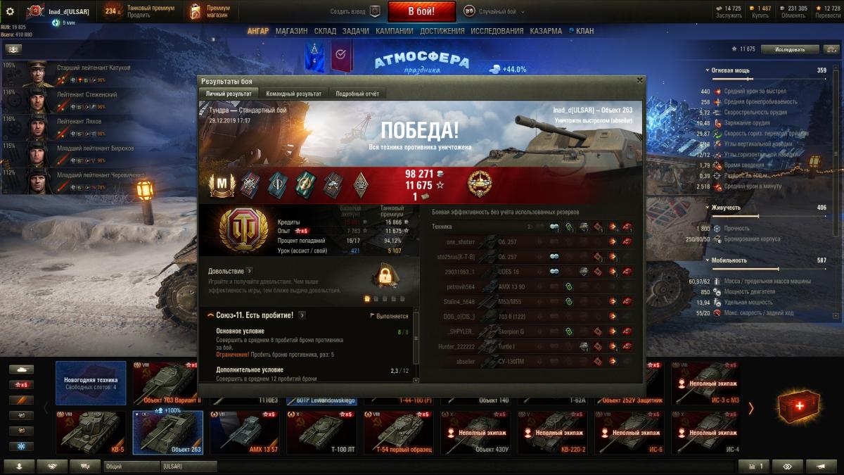 При той же броне во лбу объект более универсален. От фугасов, да, страдает больше. Лючки гораздо стабильней пробиваются у е95, чем маска у 263. На дистанции от 100 м ты не пробьешь ни тот, ни другой, если спрятать нлд. Регулярно выезжаю на противника, даю урон и не получаю в ответ. Какие-хоть слабости у 263 в клинче, кроме рандомной маски, смешно. В отличие от т95, 263 всегда может свалить. Либо не получит урон, либо успеет откатиться, плюс можно носиться по всей карте, менять фланги и т.д. Т95 нагибает при удачном стечении обстоятельств, 263 гораздо чаще.
