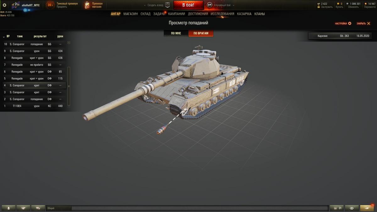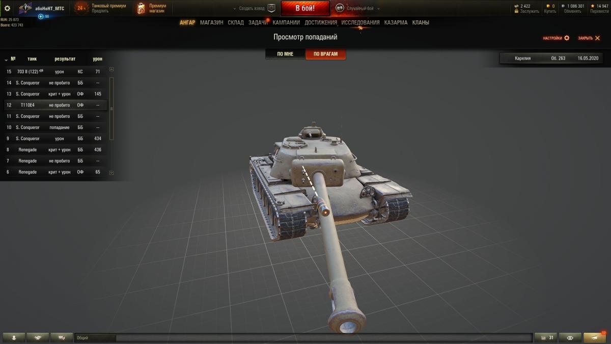 Ты прав. Не,моды показали всё корректно. И попал я именно туда. Один момент. Вафлю успели добрать за долю секунды до моего попадания. То есть я стрелял по уже подбитому танку.