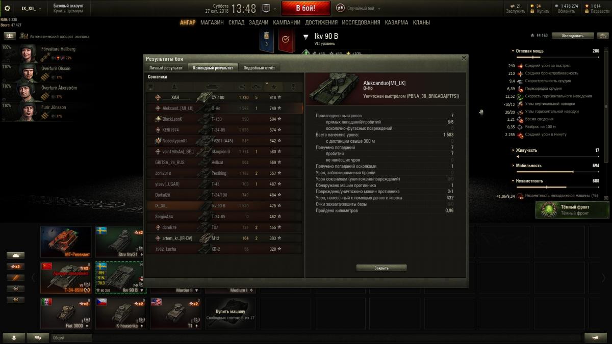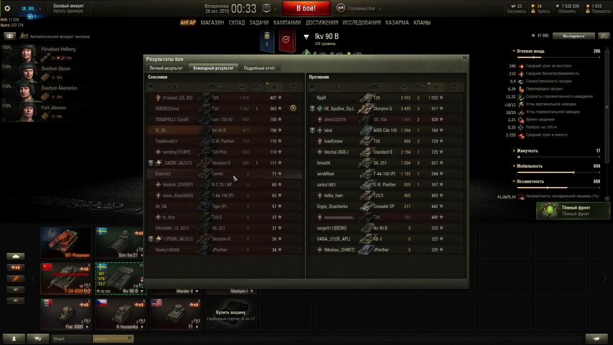 Еще вопрос: по какому принципу начисляется опыт за бой? Заметил, что на лкв90 его дают оч мало. Вот, например, на скрине, опыт О-Хо за бой, и мой. У меня уровень ниже, дамага сравнимо, он не танковал, не ассистировал, и опыта получил почти в два раза больше. Мне это непонятно.