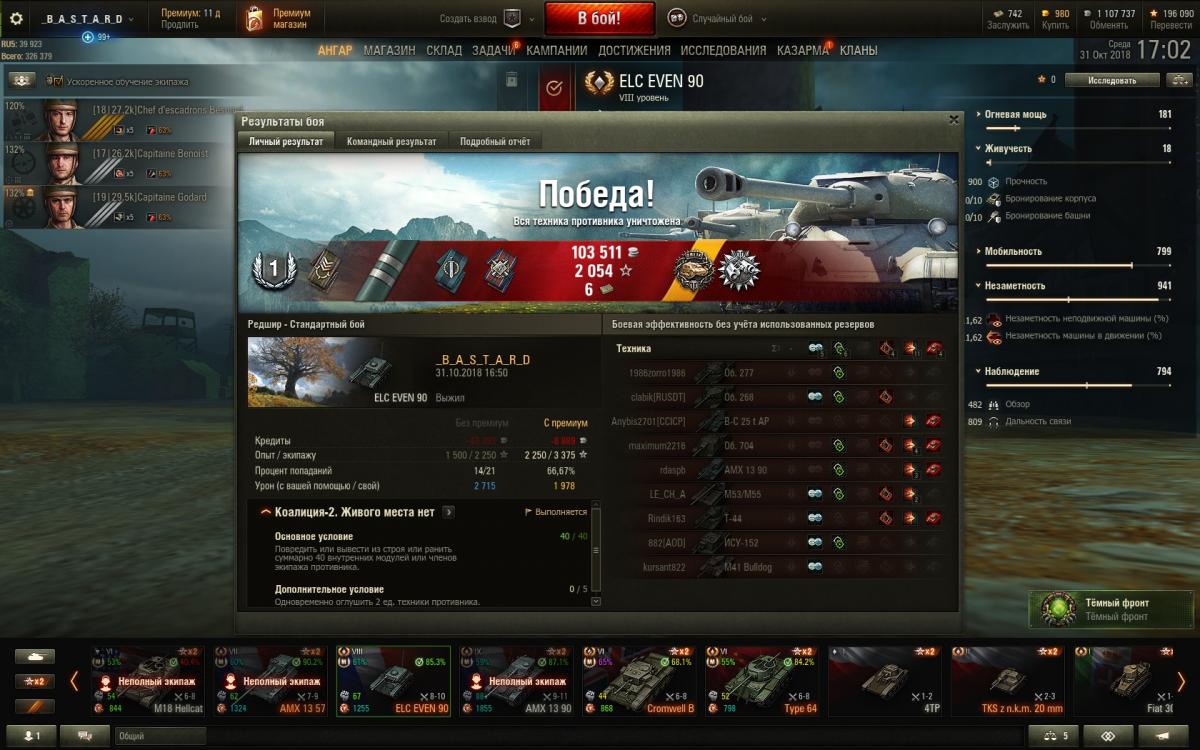 Попал наконец-то на Малиновку. Взял Мастера при ничьей, хорошо хоть не слили с такой командой. Почти 2к своего настрела и 6к света, вроде не много, но тем не менее. 11 танков обнаружил, но только по 6-и отсрелялись, а так бы мог еще и Разведчика взять. С такими топами хоть так.