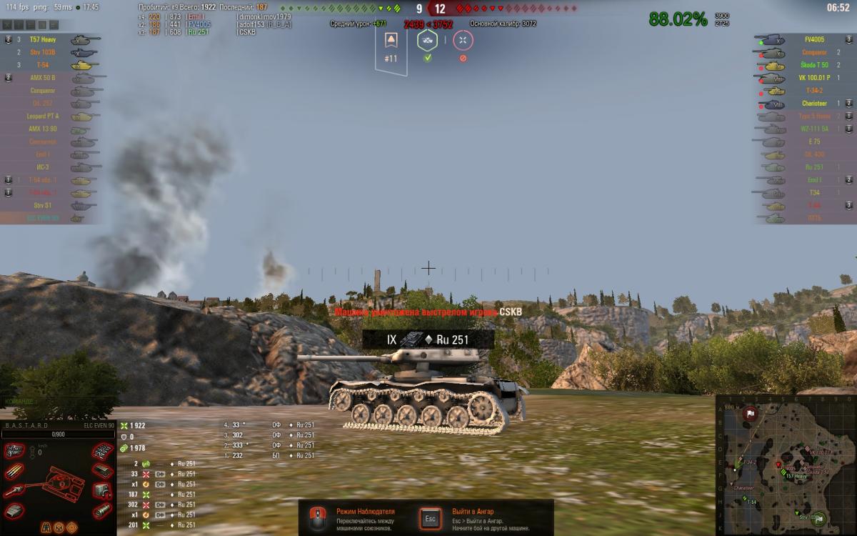 Да уж. У рушки остается хп чуть больше 190 а у меня альфа вылетает 187. А он меня фугасами насилует. класс, в общей сложности с барабана вышло 608. Казино такое казино