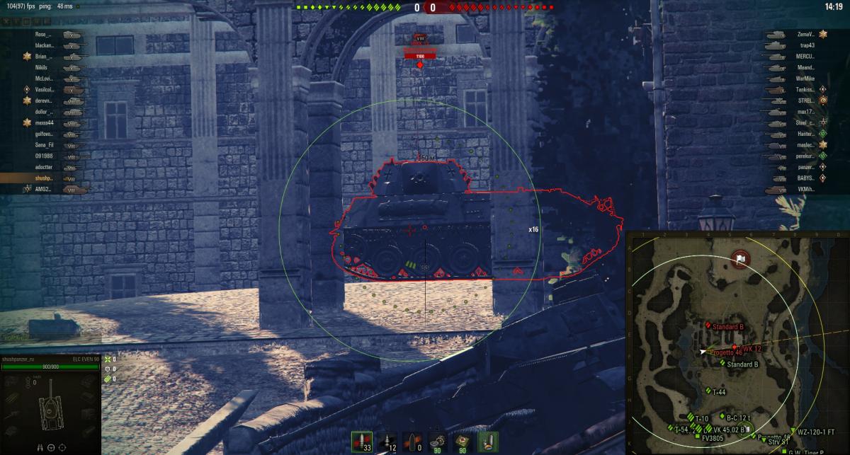 ПС: и по поводу рентгена 50м - елка позволяет сближаться намного ближе (Даже по скрину видно - метров 30, не больше, а лампы не поймал). Проверено во многих боях на себе (видимо какой-то глюк у игры по поводу этого танка). Поэтому наглеть от маскировки хвойной - для меня фан и кайф, который другие танки не дают в этой игре.