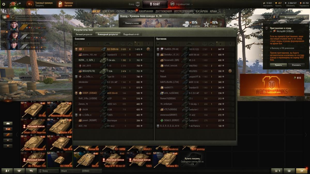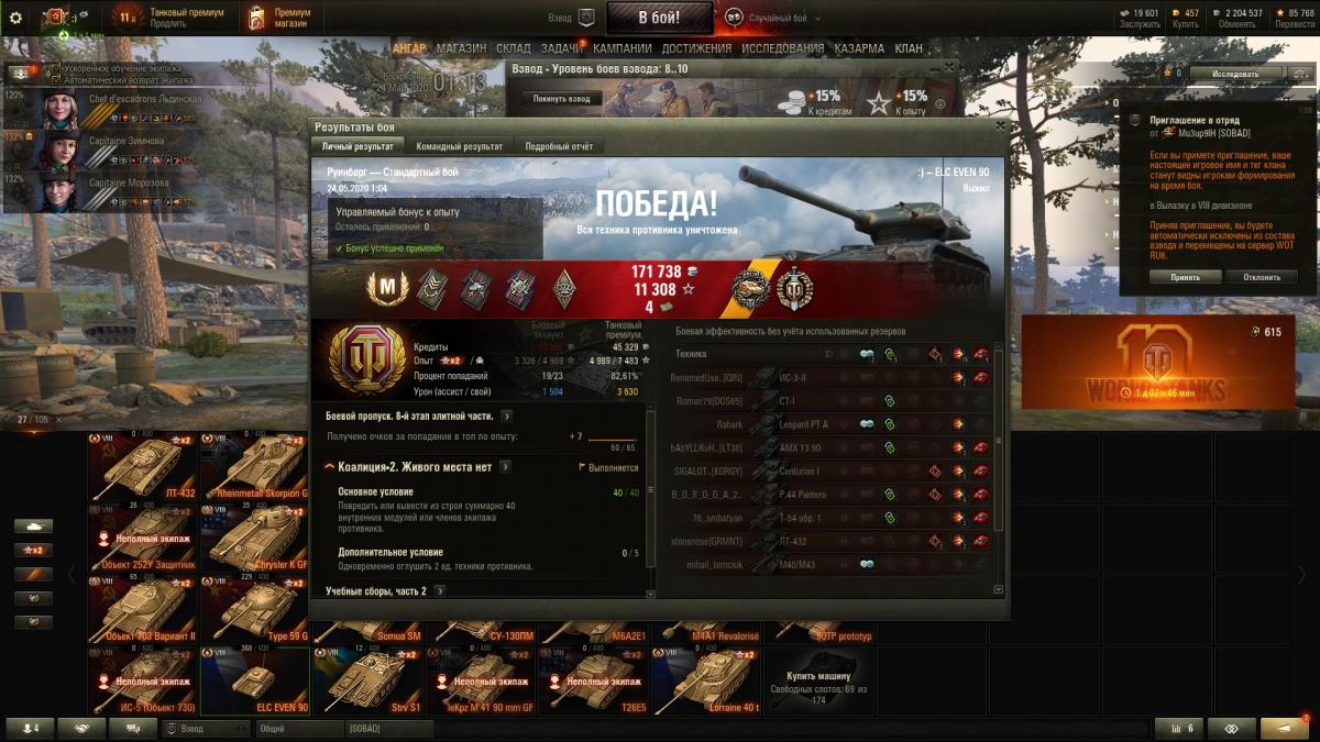 Ну и на всякий случай вышел в рандом (обычно в выходные не играю в танки) и вот единственный бой за сегодня