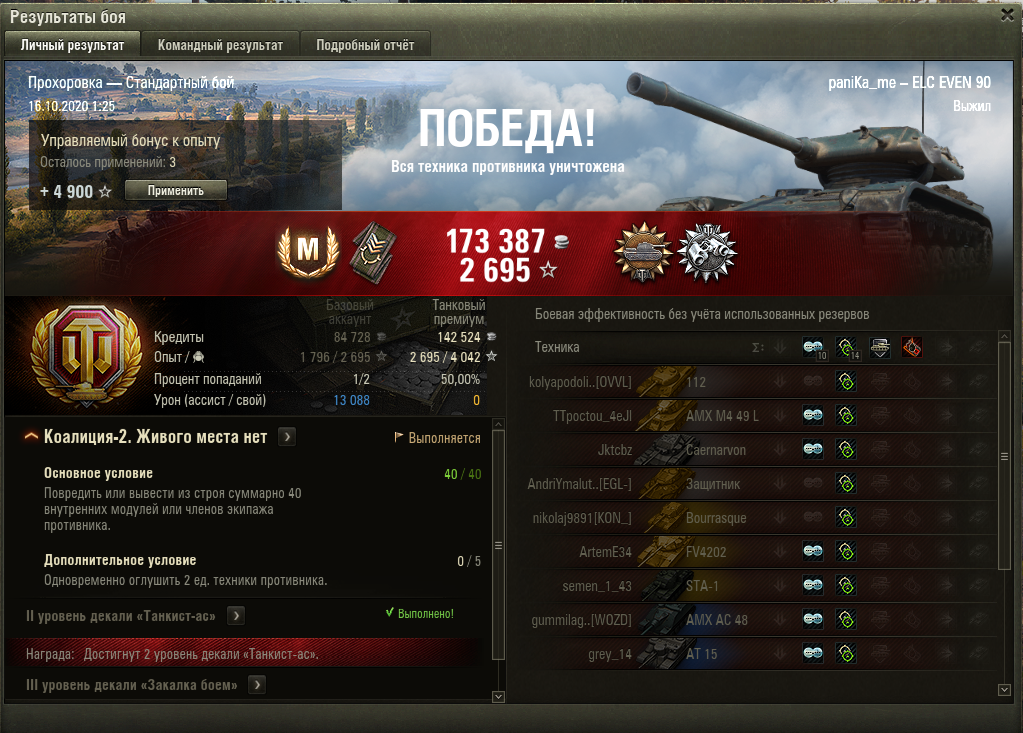 С данной машины будет снят доп.пай и она навечно пропишется у меня в качестве основного фармера. Потому что способна стабильно приносить по ~70000-90000 за бой чистыми (на прем аккаунте).